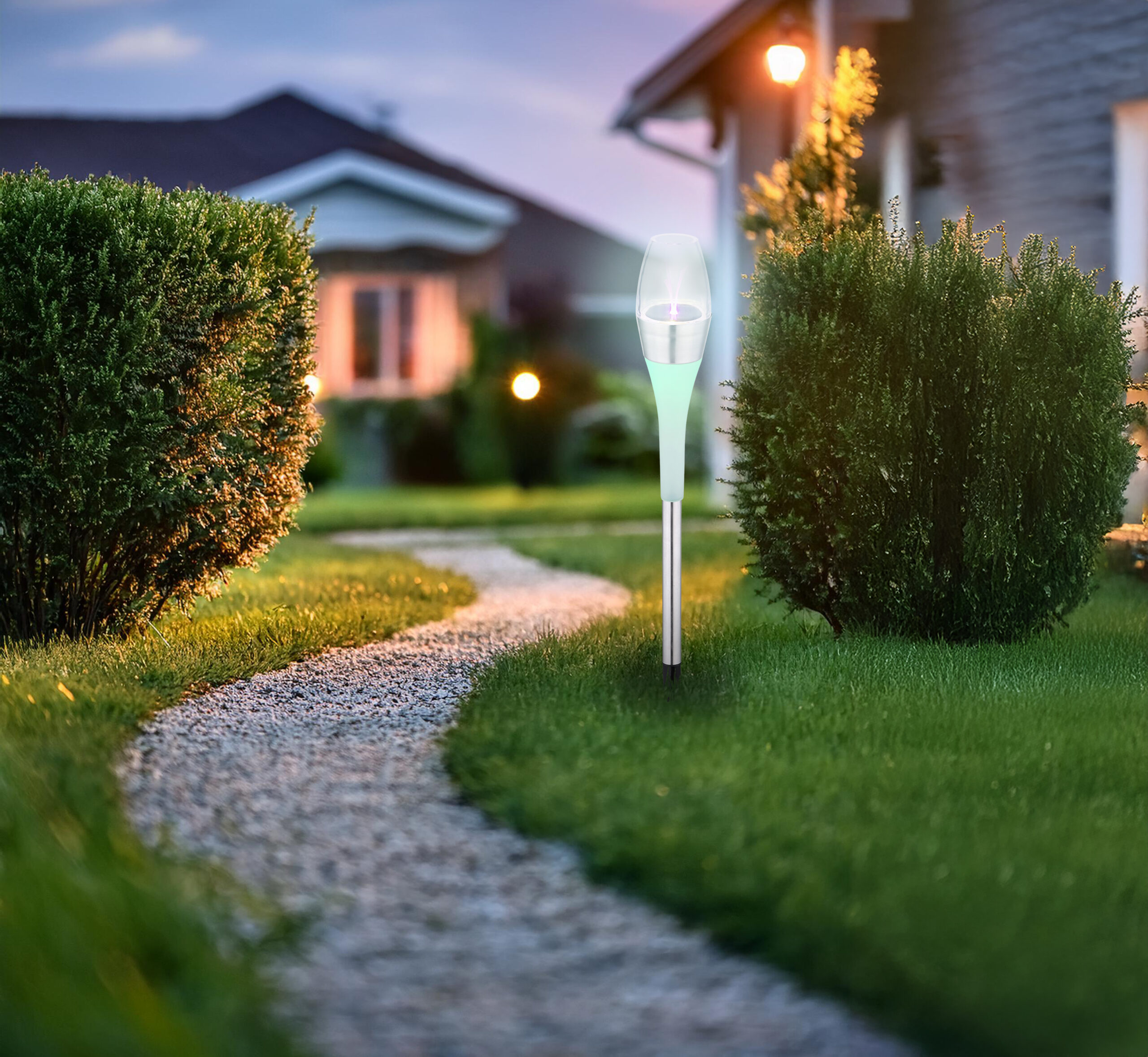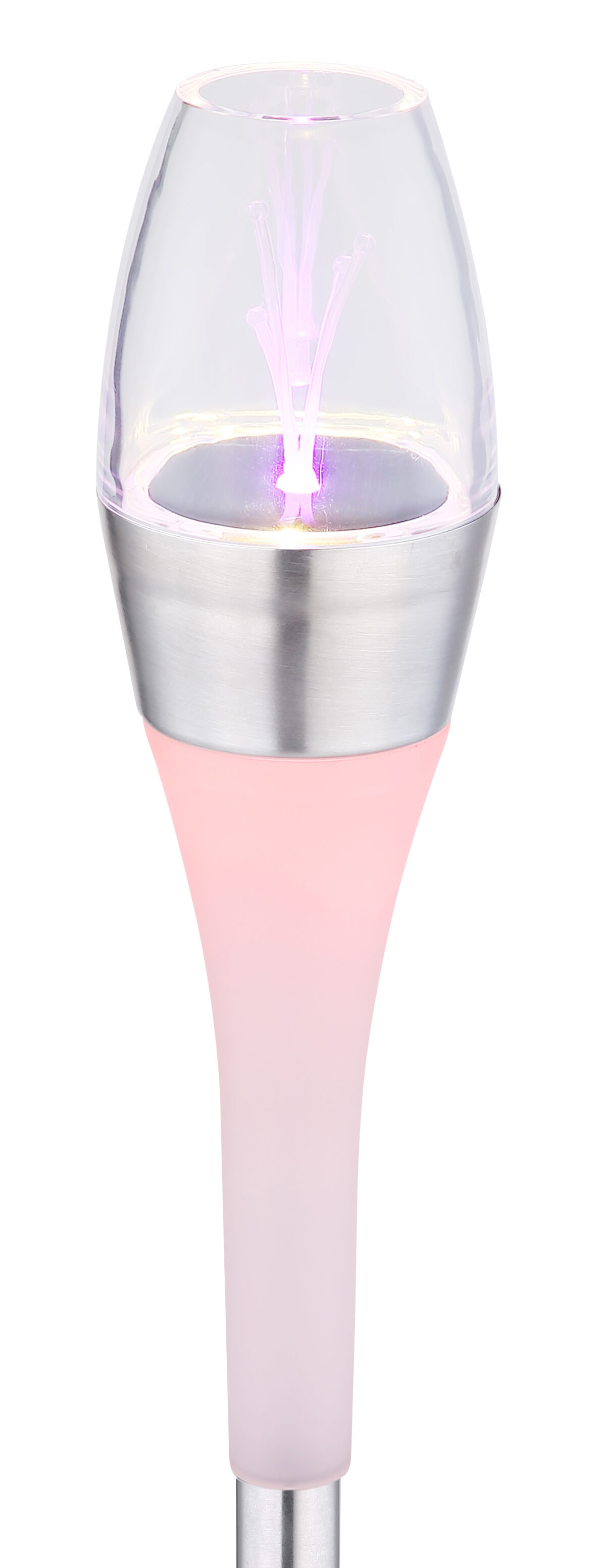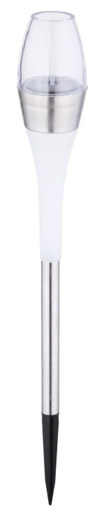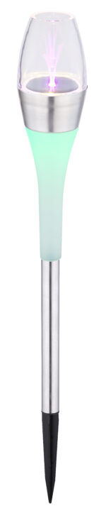 Ova solarna lampa od 55 cm je prilično netipična s funkcijom mijenjanja boje i jedinstvenim oblikom. Kombinacija materijala od nehrđajućeg čelika, prozirne i satenirane plastike je lijepo implementirana, tako da je ova solarna lampa jedinstvena u svojoj vrsti. Svetiljke to rade do 8 sati kada su potpuno napunjene