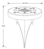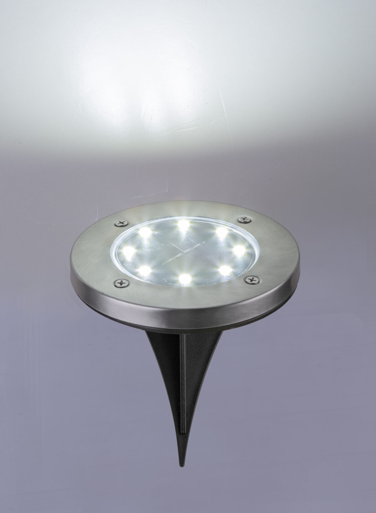 LED solarno svjetlo izrađeno od čelika i crne plastike ukrašava vrt tokom dana i pruža potrebnu orijentacijsku rasvjetu u mraku. Opremljen je praktičnim šiljkom za zemlju i stoga se lako može postaviti bilo gdje na imanju. Idealna pozicija je mesto sa dugim sunčevim zracima, tako da se integrisana baterija može dovoljno napuniti tokom dana.
