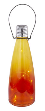 Ova osvježavajuća solarna lampa (Ø 90 mm) unosi boju u vaš vrt. Ova solarna lampa u obliku boce sa ručkom može se postaviti ili okačiti. Mješoviti displej, koji se sastoji od 12 komada u tri varijante boja, ne ostavlja ništa što se želi. 4 staklosolarne lampe sa plastikom čuvaju se u žuto-narandžastoj boji, dok su 4 komada plavo-zelene, a još 4 komada sijaju u ružičasto-ljubičastom. Opremljena sa uključenim LED sijalicama od 0,06 (10 x), ova solarna vanjska lampa visoka 260 mm privlačna je za svaku baštu i omogućava joj da svijetli do 6 sati. Ova solarna lampa sa baterijom se sama puni tokom dana, a zatim sija svojom svetlošću u mraku. Nadalje, ova solarna ukrasna lampa ima prekidač. Sa klasom zaštite IP 44, ova solarna lampa je izuzetno pogodna za upotrebu na otvorenom.