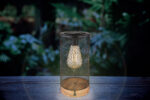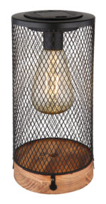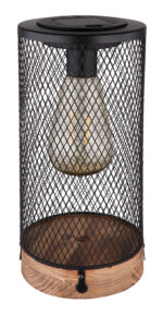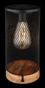 Ova sjajna solarna lampa inspiriše sjajnim dizajnom. Na okrugloj drvenoj podlozi nalazi se metalni sjenilo u obliku rešetke, na kojem je integrirana LED ploča. Pored toga, svetiljka ima IP44 stepen zaštite, koji štiti od prskanja vode.