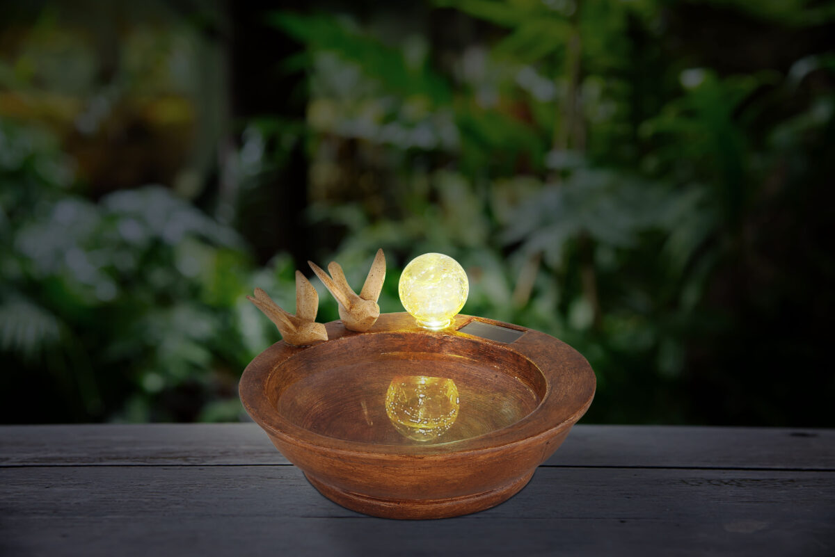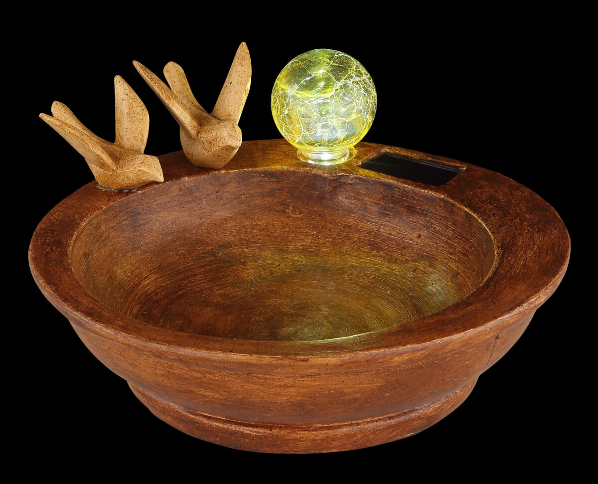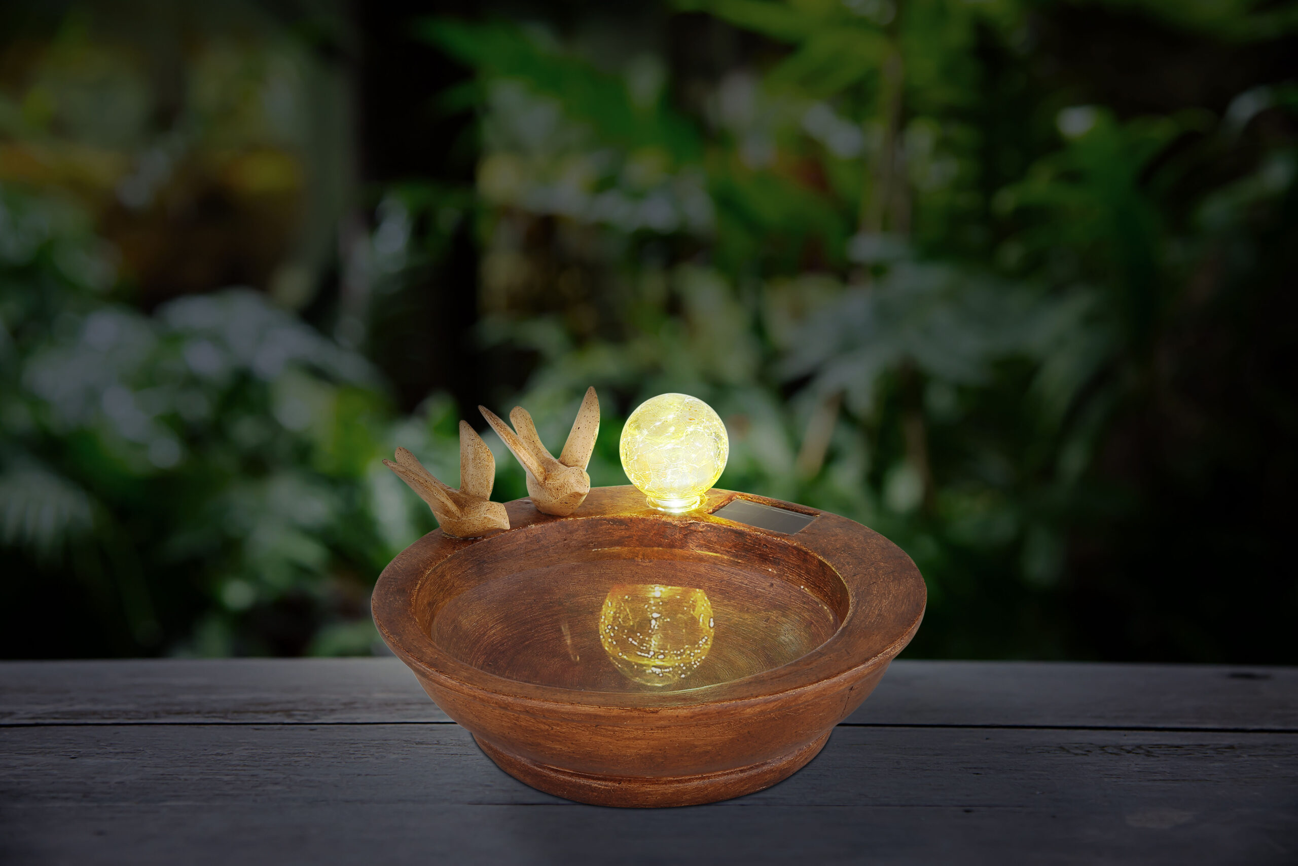 Ova prekrasna solarna lampa inspirira svojim prekrasnim dizajnom. Na smeđoj posudi (26x23cm) nalaze se dvije ptice u prekrasnom dizajnu i staklena kugla koja emituje ugodnu 6000 Kelvina hladno bijelo svjetlo. Pored toga, svetiljka ima IP44 stepen zaštite koji štiti od prskanja vode.