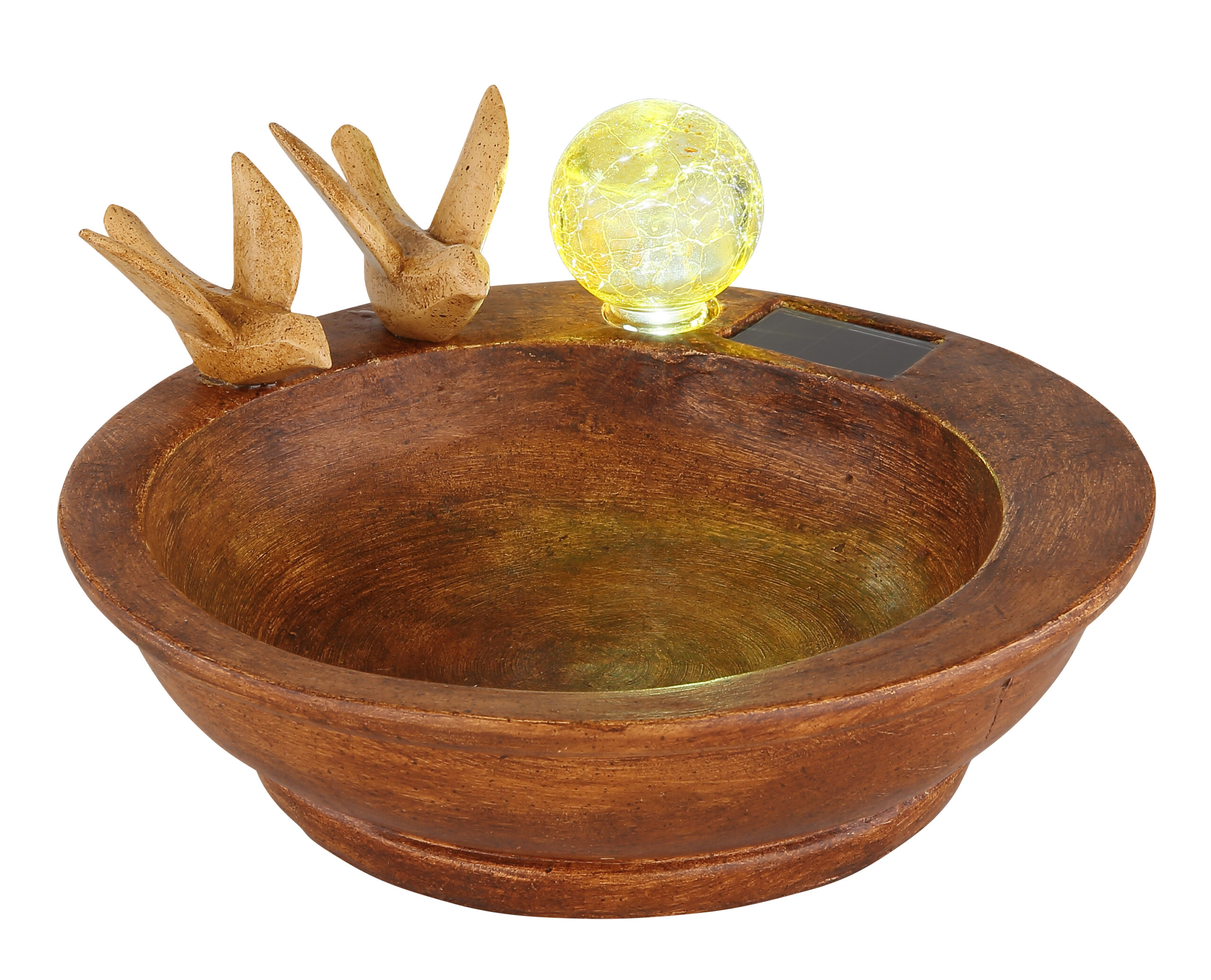 Gotovo bi se moglo pomisliti da je riječ o umjetničkom djelu, ova solarna lampa izgleda vrlo elegantno i plemenito zbog svog plemenitog dizajna i interakcije plastike bronzane boje i prozirnog stakla s izgledom razbijenog stakla. Sa stepenom zaštite IP44, ova lampa od 30,5 cm pogodna je i za spoljašnju upotrebu.