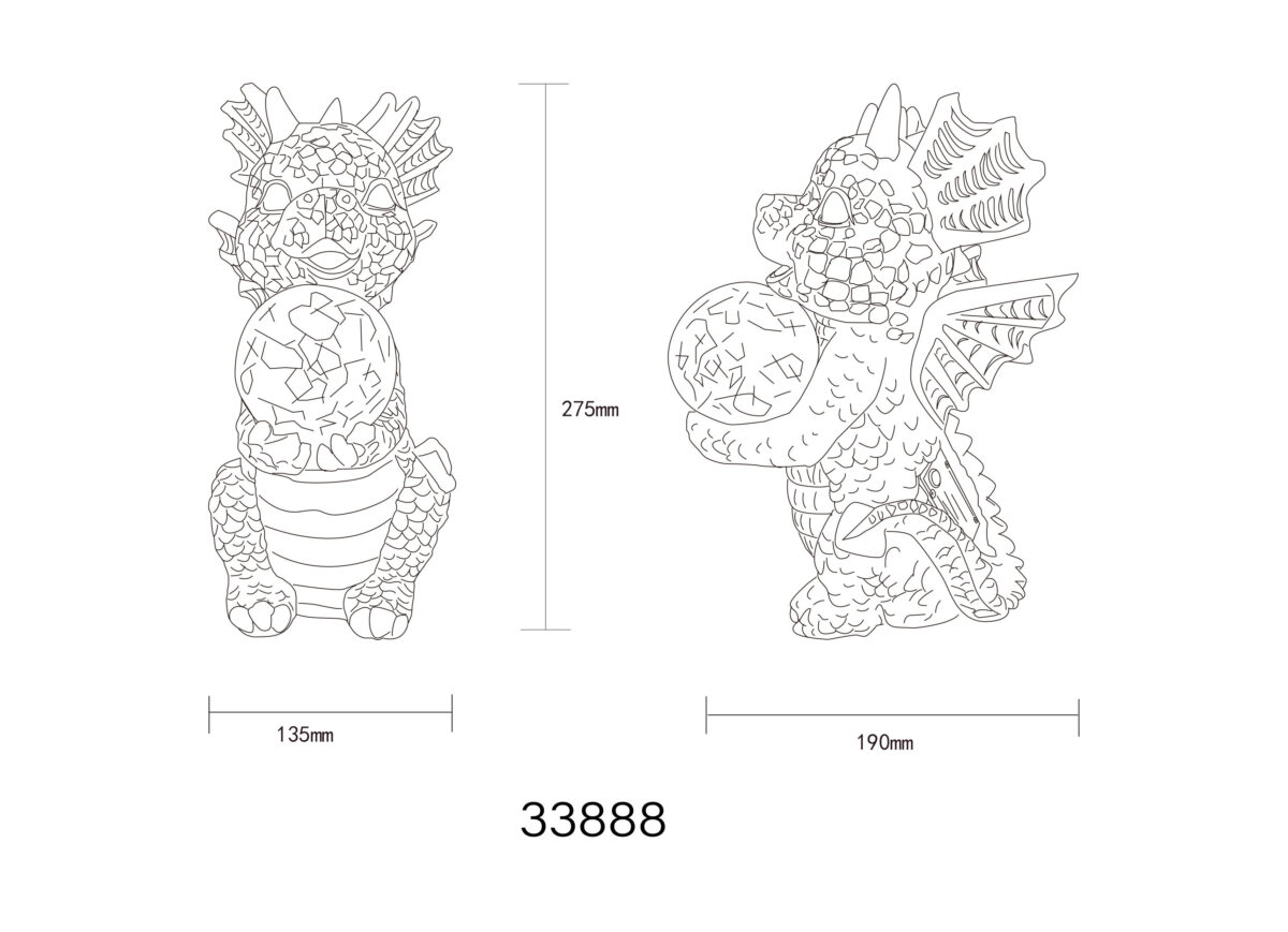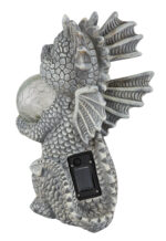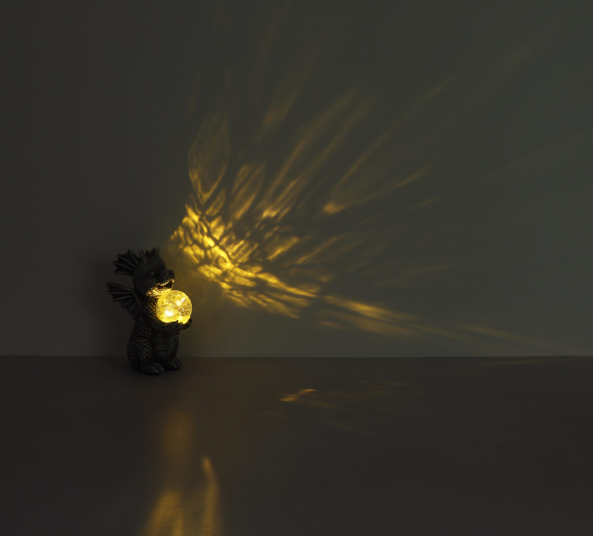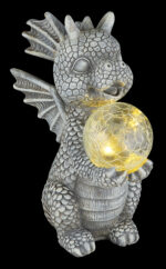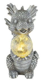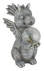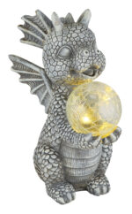 SOLAR LIGHT PLASTIC GREY u dizajnu zmajeva unosi dašak fantazije u vaš vrt. Sivo plastično tijelo i prozirna staklena kuglasta sjenila sa efektom pucketanja pružaju atmosfersko osvjetljenje. Sa LED diodom i IP44 ocjenom, ova svjetiljka je otporna na vremenske uvjete i idealna za stvaranje čarobne atmosfere na otvorenom. Savršeno za vrtne zabave ili kao ukrasni element za poseban dodir.