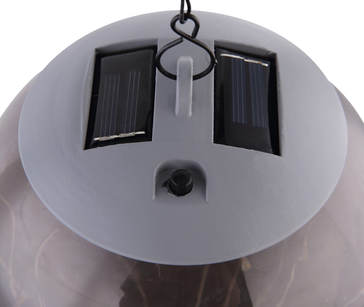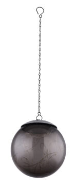 Ova crna solarna viseća lampa od plastike sa dimnom optikom opremljena je unutrašnjom LED trakom (prečnika 150 mm) i mistično osvetljava vašu terasu ili baštu. Model ima prekidač za paljenje ili gašenje svjetla po želji.