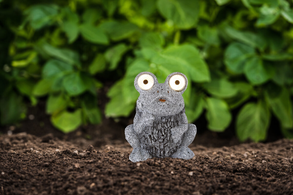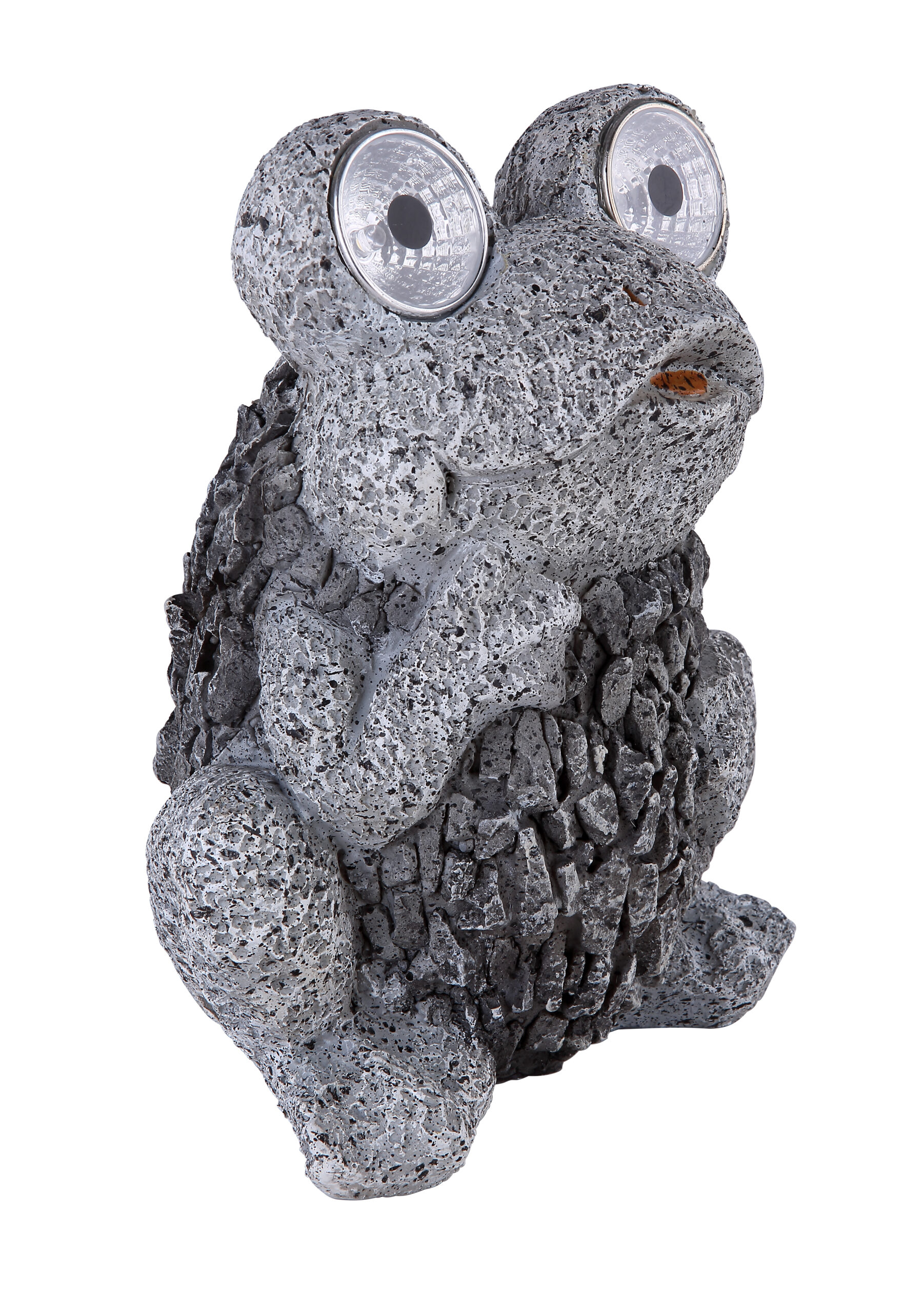 Ova solarna žaba oduševi svaki vrt u sumrak svojim prekrasnim osvijetljenim očima (2xLED 0,06W). Ova solarna lampa je svestrana – bilo na ribnjaku, na balkonu ili u vrtu. Uz priloženu bateriju, ova dekorativna solarna lampa svijetli do 6 sati. Zahvaljujući IP44, ova solarna lampa je idealna za upotrebu na otvorenom.