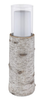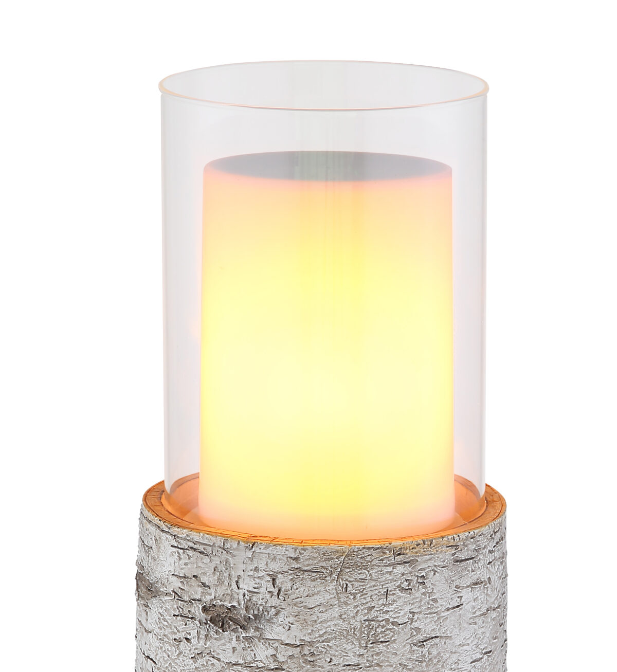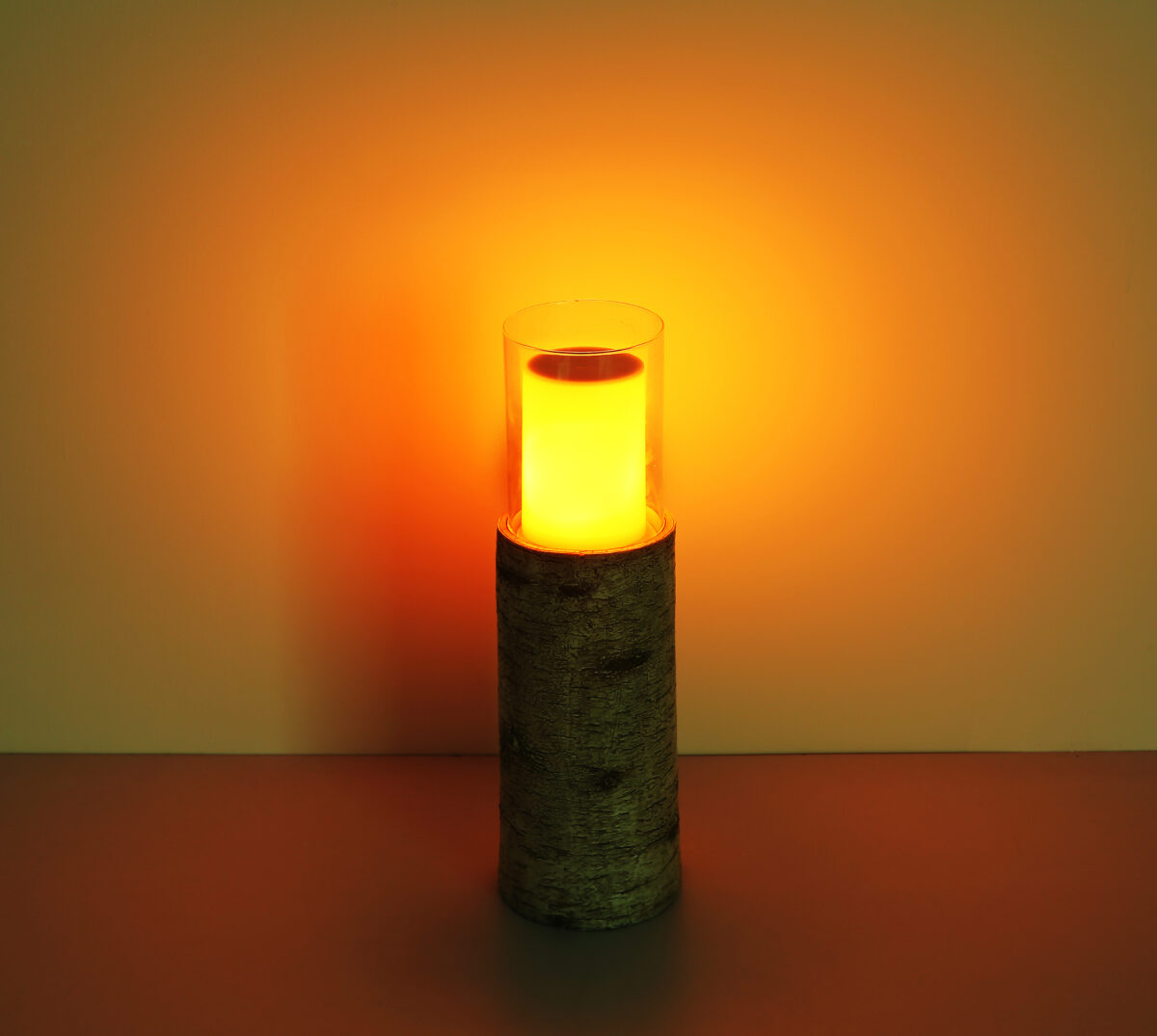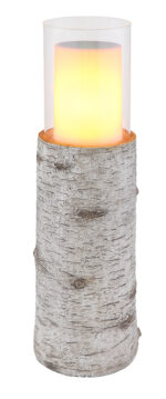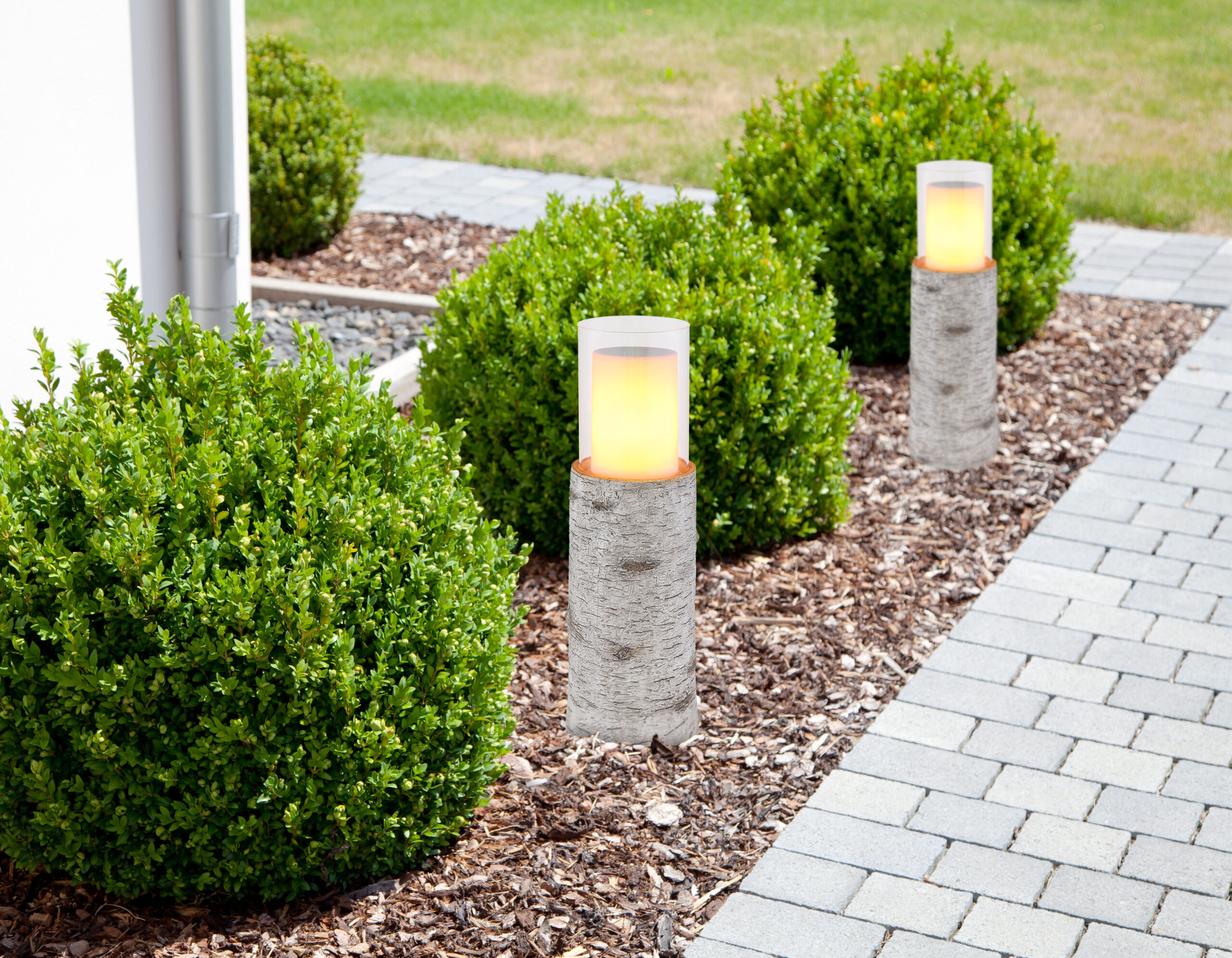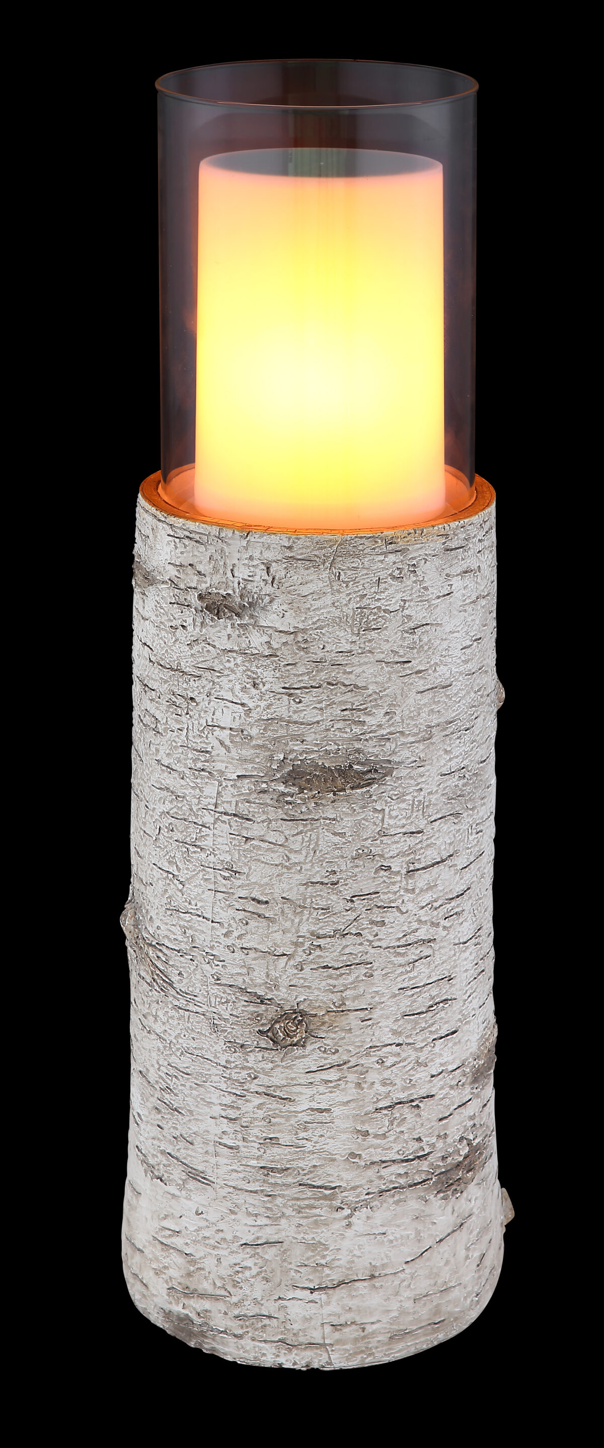 Ova cilindrična solarna lampa (ø 13,5 cm) u izgledu drveta je atmosferski dodatak vašem vrtu, terasi ili balkonu. Ravna donja strana solarne svetiljke od 43,5 cm omogućava fleksibilno pozicioniranje na ravnim površinama kao što su stolovi ili na prozorskoj dasci. Unutar stakla na vrhu nalazi se 12 LED sijalica na solarni pogon (boja svjetla 1200 Kelvina), koje stvaraju ugodnu atmosferu u vašem vanjskom prostoru poput svjetlosti svijeća.
