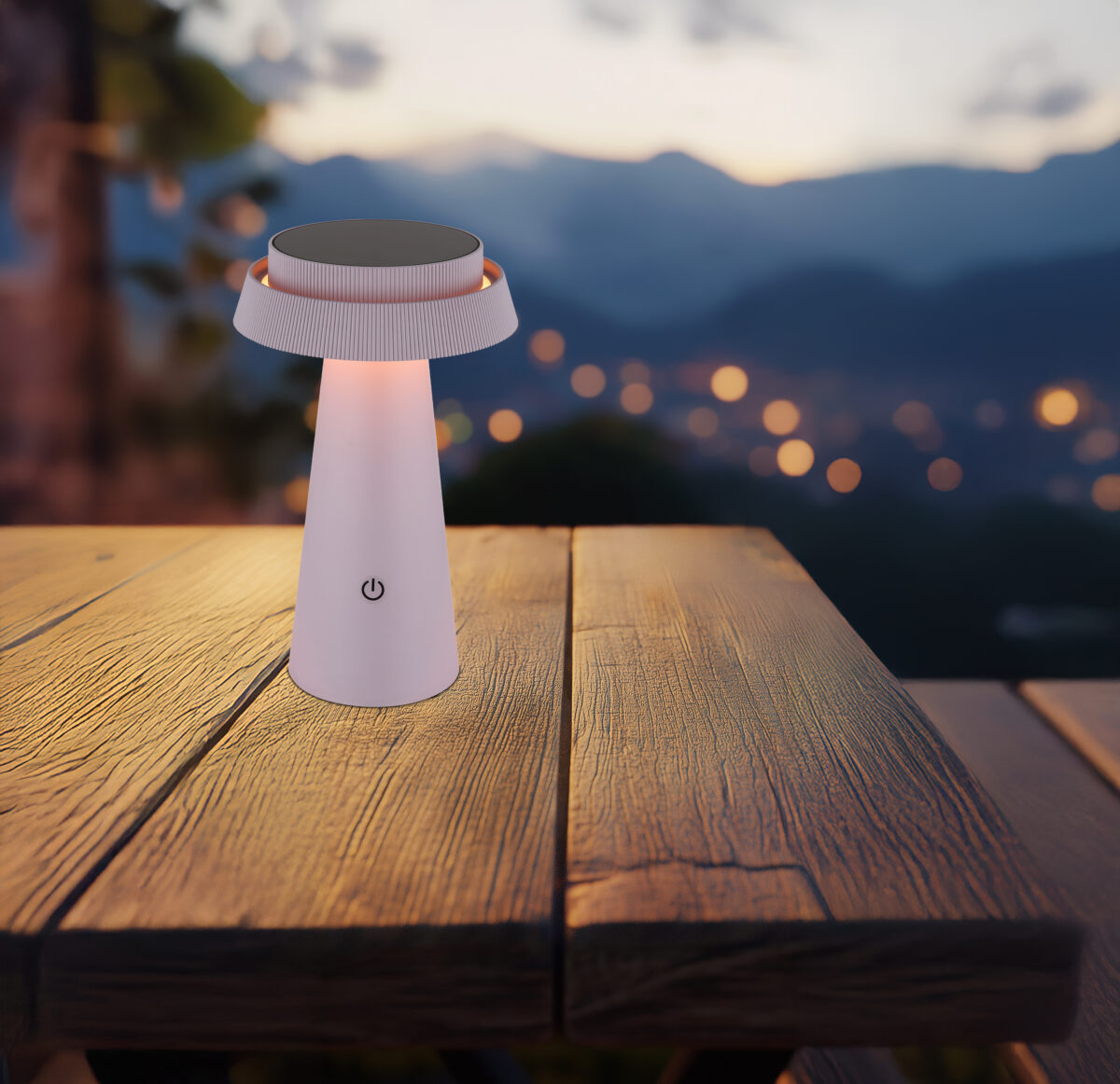 Plastično ružičasto solarno svjetlo u obliku čaše donosi živopisni akcenat boja na bilo kojem vanjskom prostoru. Sa svojim kućištem od mat ružičaste plastike i crnim elementom, ne samo da je vizuelni vrhunac, već je i funkcionalno dobro osmišljen. Svjetiljka nudi svjetlosnu snagu od 200 lumena i omogućava fleksibilnu kontrolu temperature boje od 1800 K do 3000 K preko beskonačnog dimera na dodir. Boje se mogu fiksirati, a zgodna memorijska funkcija čuva vaše posljednje postavke. Lako punjenje je moguće zahvaljujući ugrađenom USB kablu za punjenje: preko USB-C to traje oko 4 sata, dok solarno punjenje može trajati do 22 sata. Lampa nudi vreme osvetljenja do 12 sati. Sa IP54, također je otporan na vremenske uvjete i idealan je za vrt, terasu ili balkon. Touch On/Off osigurava jednostavan rad.