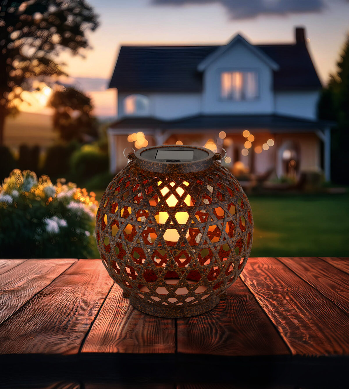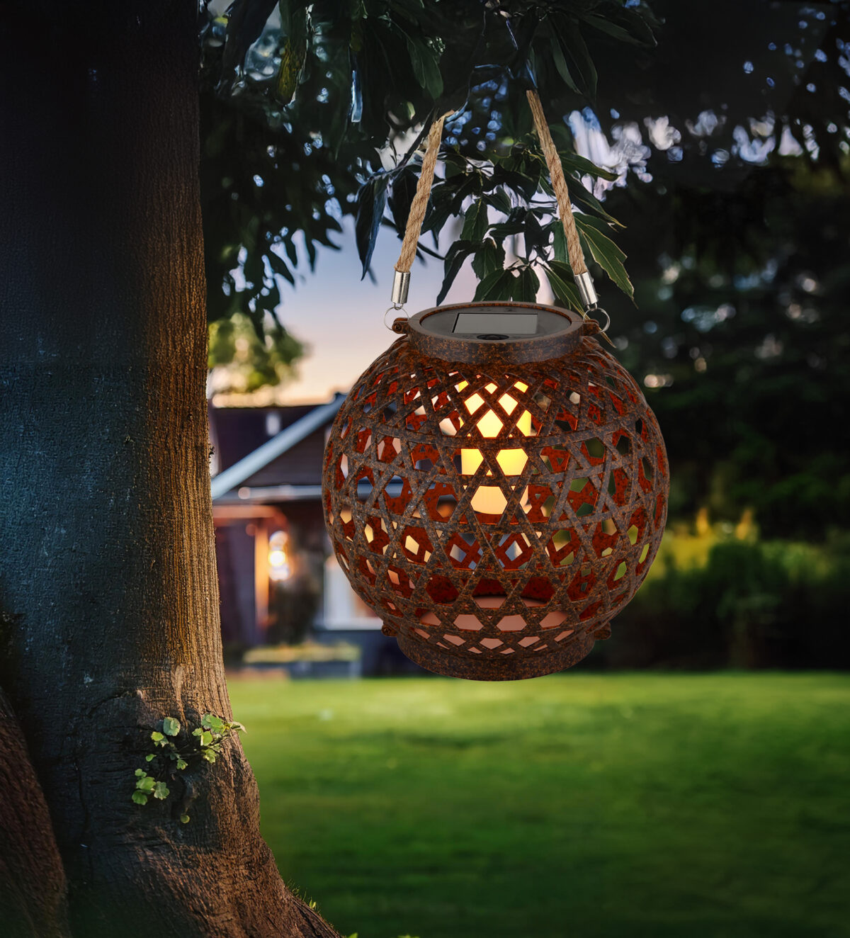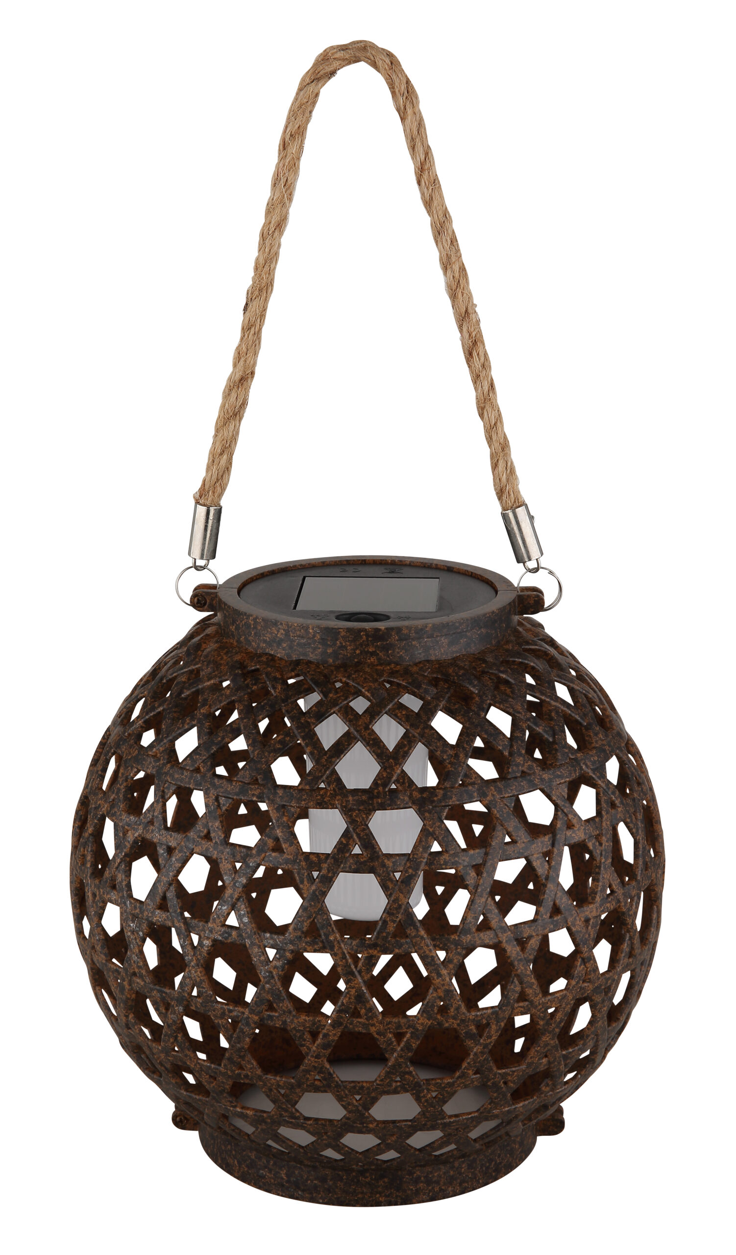 SOLAR LIGHT PLASTIC RUST OPTICS je šarmantan fenjer koji je pogodan i za vješanje i za stajanje. Okruglo tijelo u plastičnom izgledu boje hrđe i opal plastična nijansa s konopljom prirodne boje stvaraju toplo, privlačno osvjetljenje. Sa 12 LED dioda i svjetlosnom temperaturom od 1800 K, ova svjetiljka pruža blago svjetlo u vašoj bašti ili terasi. Prekidač pritiska omogućava lak rad, dok IP44 ocena obezbeđuje otpornost na vremenske uslove.