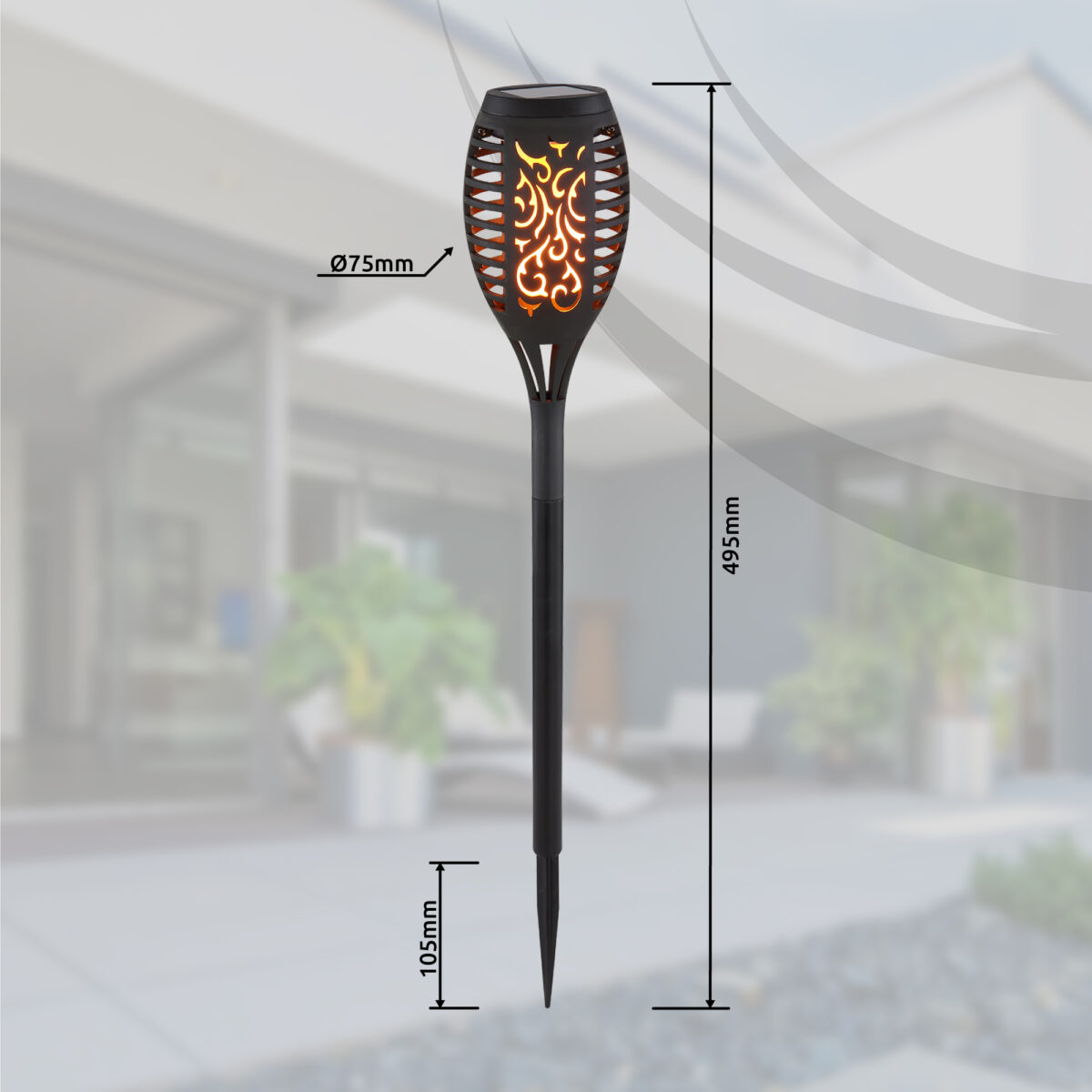 LED solarna lampa, koja se isporučuje sa odgovarajućim šiljkom za uzemljenje, pruža atmosfersko i dekorativno osvjetljenje u vanjskom prostoru. Ovo olakšava postavljanje solarne lampe bilo gdje u vrtu. Zahvaljujući modernom solarnom panelu na vrhu, lampa za uzemljenje puni se tokom dana i može širiti svoju toplu svjetlost do 8 sati u večernjim satima uz puno punjenje. Zbog ip44 stepena zaštite, svetiljka je zaštićena od prskanja vode i stoga je predodređena za spoljašnju upotrebu. Atmosfera za sanjanje je zagarantovana. (Set od 3)