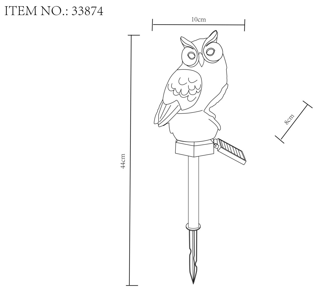 Tražite li pravu solarnu lampu za Vaš vrt? Lijepo dizajnirana svjetleća sova pruža ono posebno, dodatak Erdspitz-a čini vas fleksibilnim u korištenju bez i najmanjeg napora. Kada je uključeno (prekidač za uključivanje/isključivanje) i kada je potpuno napunjeno, vaša zapanjujuće lijepa solarna svjetlost će svijetliti do 8 sati.