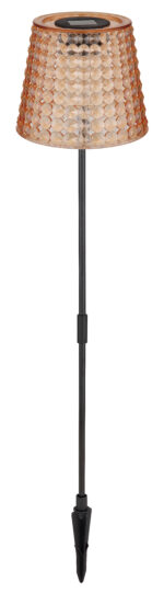 Zapanjujuća solarna svjetlost koja će dodati toplu atmosferu vašem prostoru. Lampa je izrađena od crne mat plastike i fascinantne plastike zlatne boje koja nježno filtrira svjetlost. Sjenilo s kristalnim izgledom je jedinstveno i daje lampi poseban štih. Sa prečnikom od 125 mm i visinom od 600 mm, ova solarna lampa je prava privlačna za oči u svakoj prostoriji. Klizni prekidač omogućava jednostavno rukovanje. Ova svetiljka se isporučuje sa 1x LED 0,06W 3V. Uključena je i baterija (40mAh 1.2V). Ovaj set sadrži 2 komada solarne svjetlosti. Nadamo se da sa ovim solarnim svjetlom možete podići svoje sobe na novi nivo!