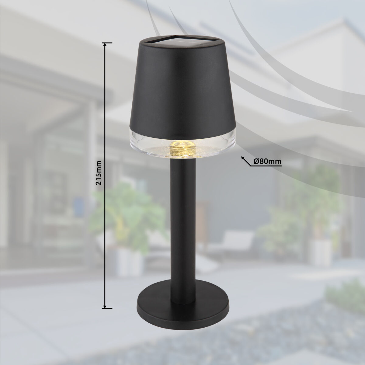 Okrugla stolna lampa od crne mat plastike je elegantna i praktična solarna lampa za unutrašnju i vanjsku upotrebu. Sa prozirnim plastičnim sjenilom i promjerom od 80 mm, savršeno se uklapa na male stolove ili bočne stolove. Štedljiva LED dioda snage 0,5W proizvodi ugodno toplo bijelo svjetlo s temperaturom boje od 3000K. Zahvaljujući IP44 zaštitnoj klasi, solarno svjetlo je otporno na vremenske uvjete i može se bez problema koristiti na otvorenom. Jednostavan i moderan izgled svetiljke harmonično se uklapa u svaki ambijent i pruža atmosfersko osvetljenje. Postavite dekorativni naglasak u svom vrtu, na balkonu ili čak u dnevnoj sobi s ovom elegantnom solarnom lampom i uživajte u ugodnoj atmosferi koju ona stvara.