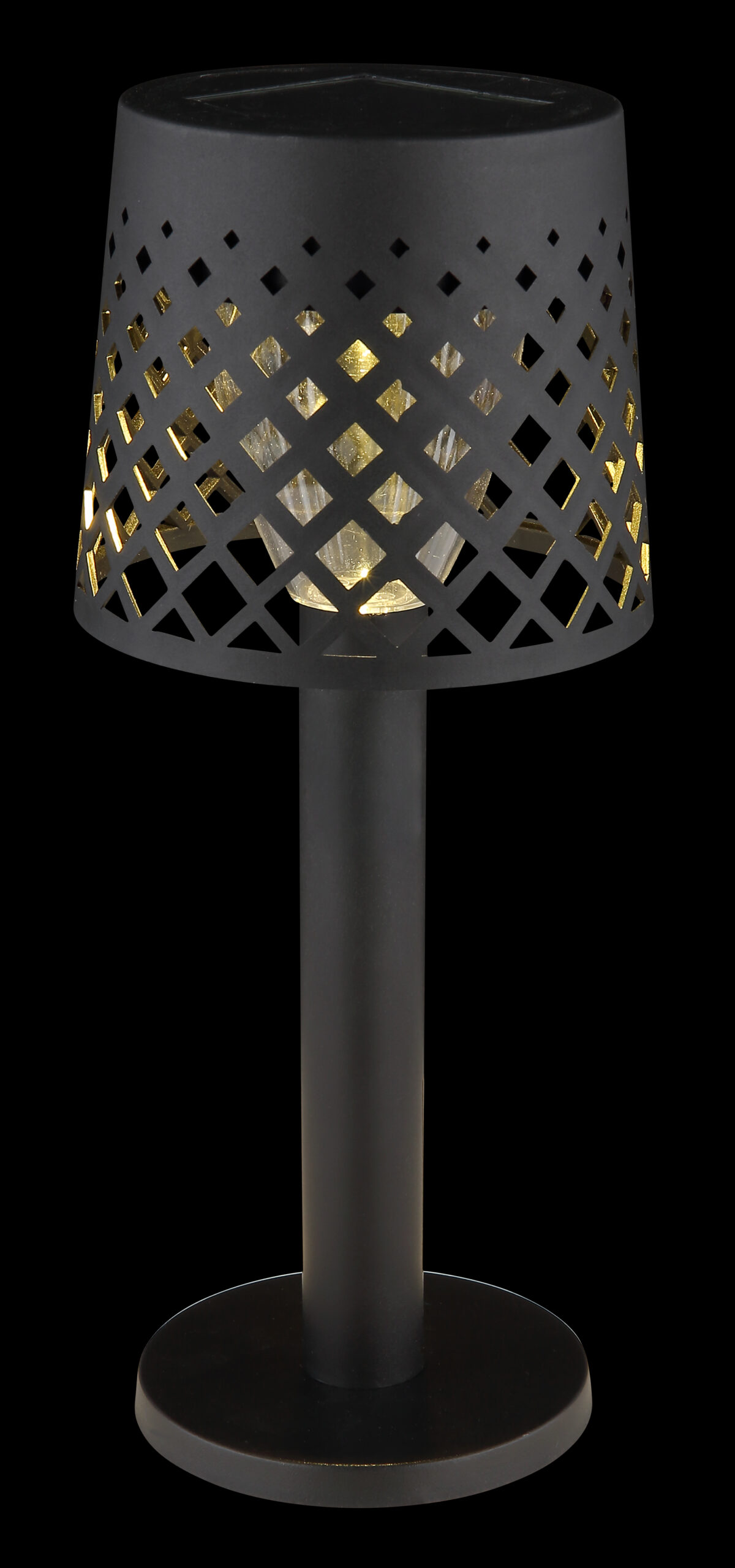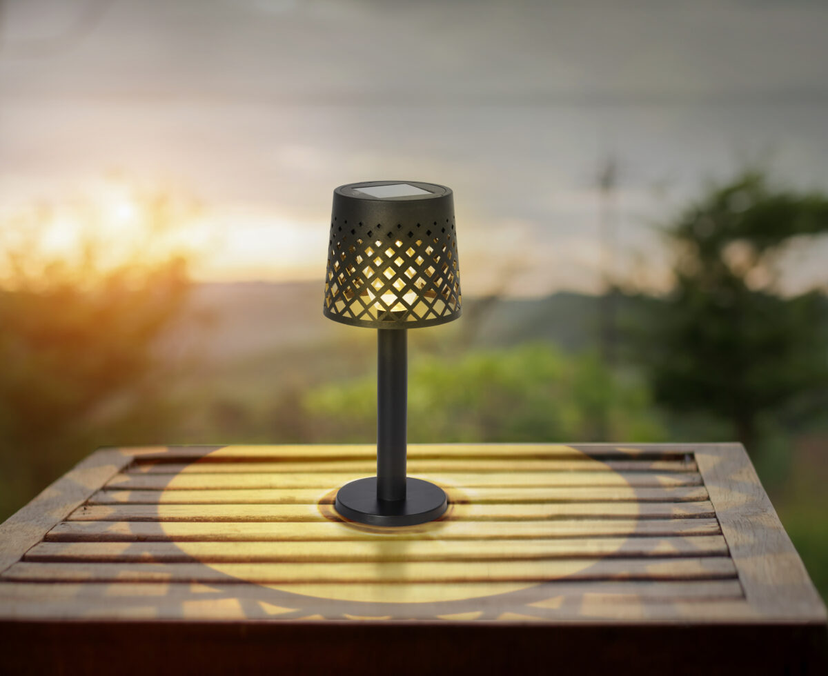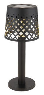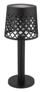 Okrugla stolna lampa s filigranskom niti iznutra i rešetkastim sjenilom savršena je kombinacija klasičnog i modernog dizajna. Solarna lampa od crne mat plastike ima LED diodu koji štedi energiju koja pruža ugodno osvjetljenje. Prozirno plastično sjenilo i crno tijelo daju lampi bezvremenski izgled, dok klizni prekidač osigurava udoban rad. Sa prečnikom od 90 mm i snagom od 0,06 W, solarno svetlo nudi toplu boju svetlosti od 3000K i može se koristiti i na otvorenom zahvaljujući IP44 zaštitnoj klasi. Postavite dekorativni naglasak u svom vrtu ili na svojoj terasi s ovom elegantnom i praktičnom solarnom lampom i uživajte u atmosferskom osvjetljenju pri zalasku sunca.