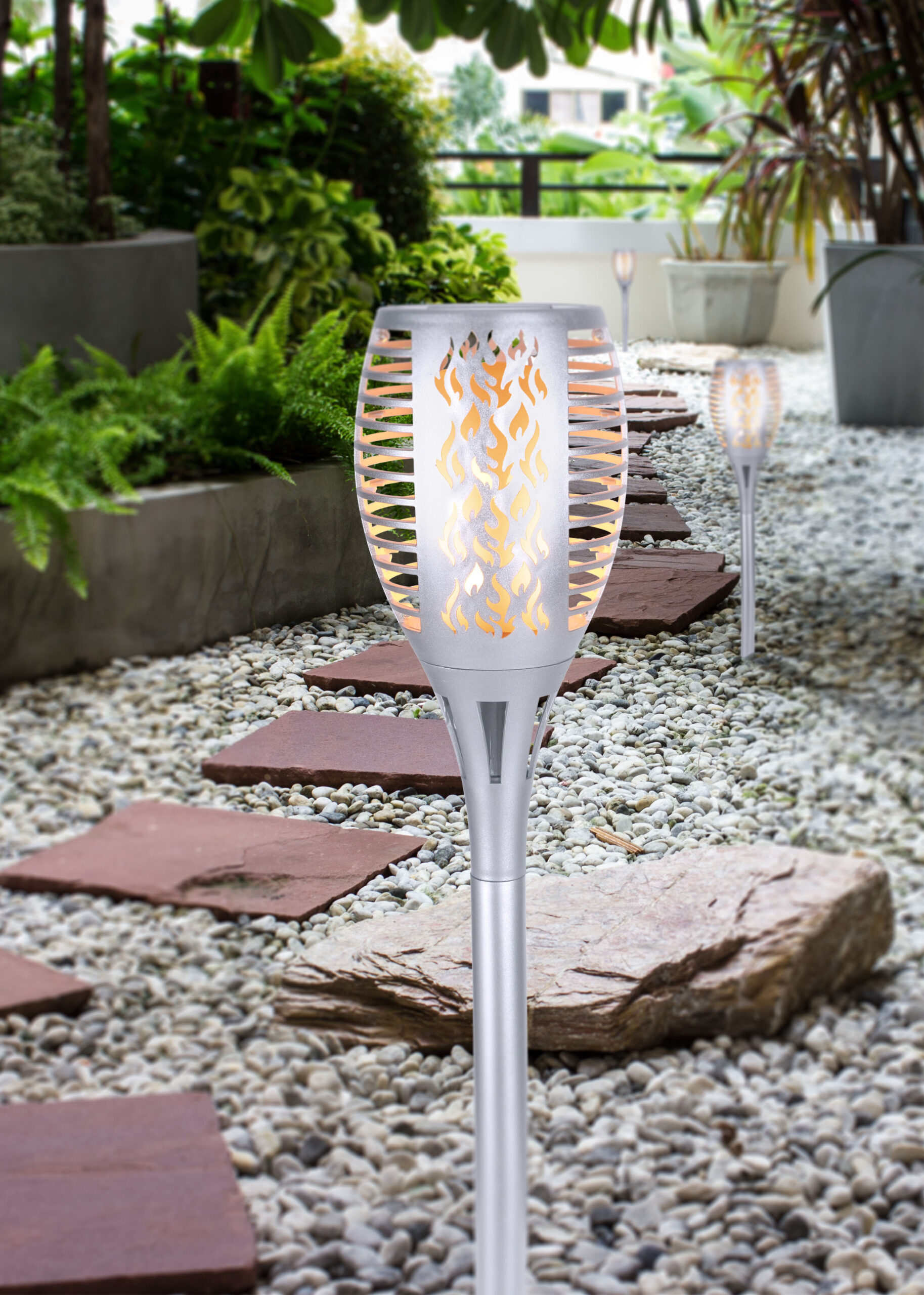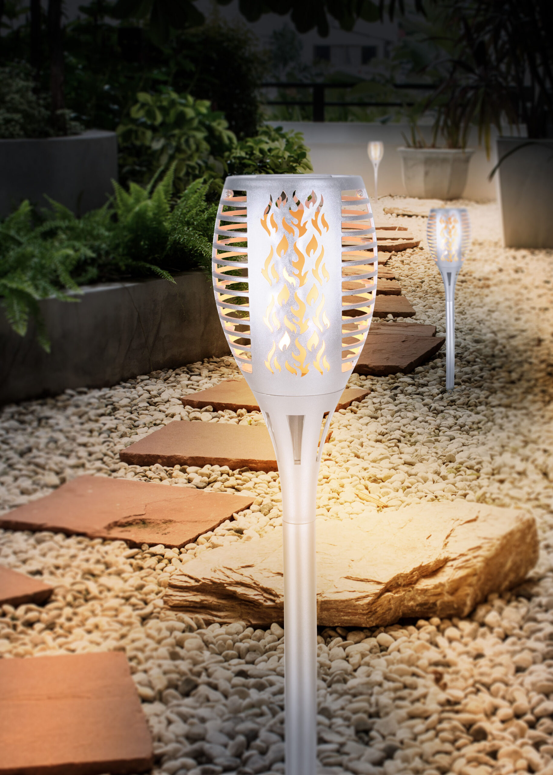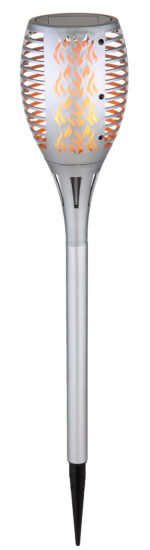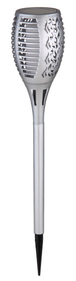 LED solarna svjetiljka, koja dolazi s odgovarajućim šiljkom za tlo, pruža atmosfersko i dekorativno osvjetljenje u vanjskom prostoru. Tako se solarna lampa srebrne boje može lako postaviti bilo gdje u vrtu. Zahvaljujući modernom solarnom panelu na vrhu, zemaljsko svjetlo se puni tokom dana i može širiti toplo svjetlo od 1200 Kelvina do 8 sati u večernjim satima kada je potpuno napunjeno. Zbog IP44 stepena zaštite, svetiljka je zaštićena od prskanja vode i stoga je predodređena za spoljašnju upotrebu. Atmosfera za sanjanje je zagarantovana.