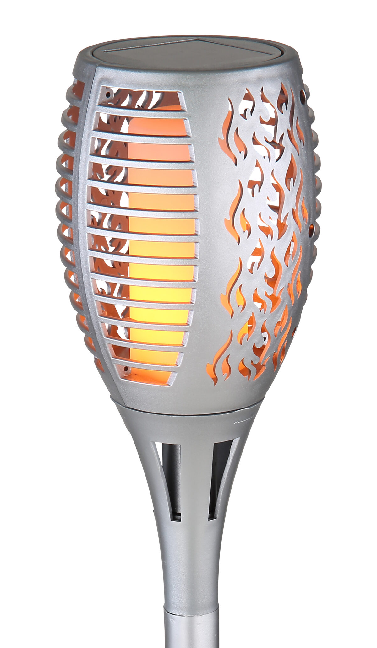 LED solarna svjetiljka, koja dolazi s odgovarajućim šiljkom za tlo, pruža atmosfersko i dekorativno osvjetljenje u vanjskom prostoru. Tako se solarna lampa srebrne boje može lako postaviti bilo gdje u vrtu. Zahvaljujući modernom solarnom panelu na vrhu, zemaljsko svjetlo se puni tokom dana i može širiti toplo svjetlo od 1200 Kelvina do 8 sati u večernjim satima kada je potpuno napunjeno. Zbog IP44 stepena zaštite, svetiljka je zaštićena od prskanja vode i stoga je predodređena za spoljašnju upotrebu. Atmosfera za sanjanje je zagarantovana.