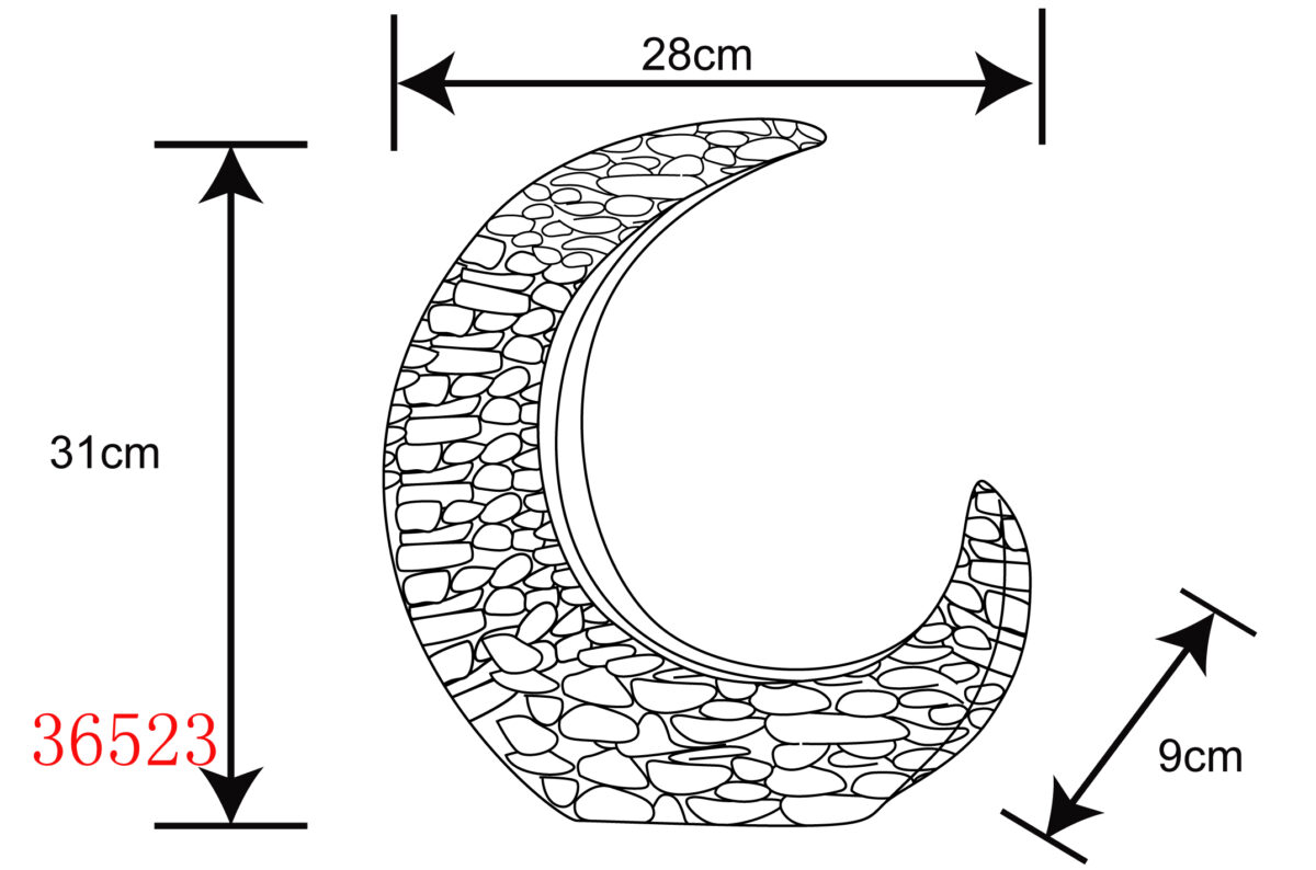 Ova solarna lampa u obliku polumjeseca u izgledu kamena (klasa zaštite IP44) savršena je za vašu terasu ili vrt. Solarna lampa od 31 cm je zlatno obojena iznutra, što dovodi do ugodne svjetlosne slike s toplom bijelom svjetlošću (3000 Kelvina) od 25 svjetlosnih tačaka na LED traci. Osim toga, zahvaljujući ravnoj donjoj strani, lako ih možete postaviti e.B. na stolovima i tako stvorite prekrasnu atmosferu u vašem vanjskom prostoru.
