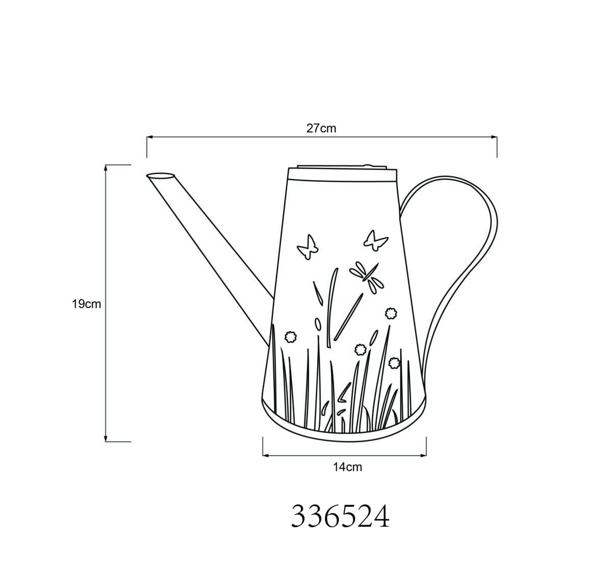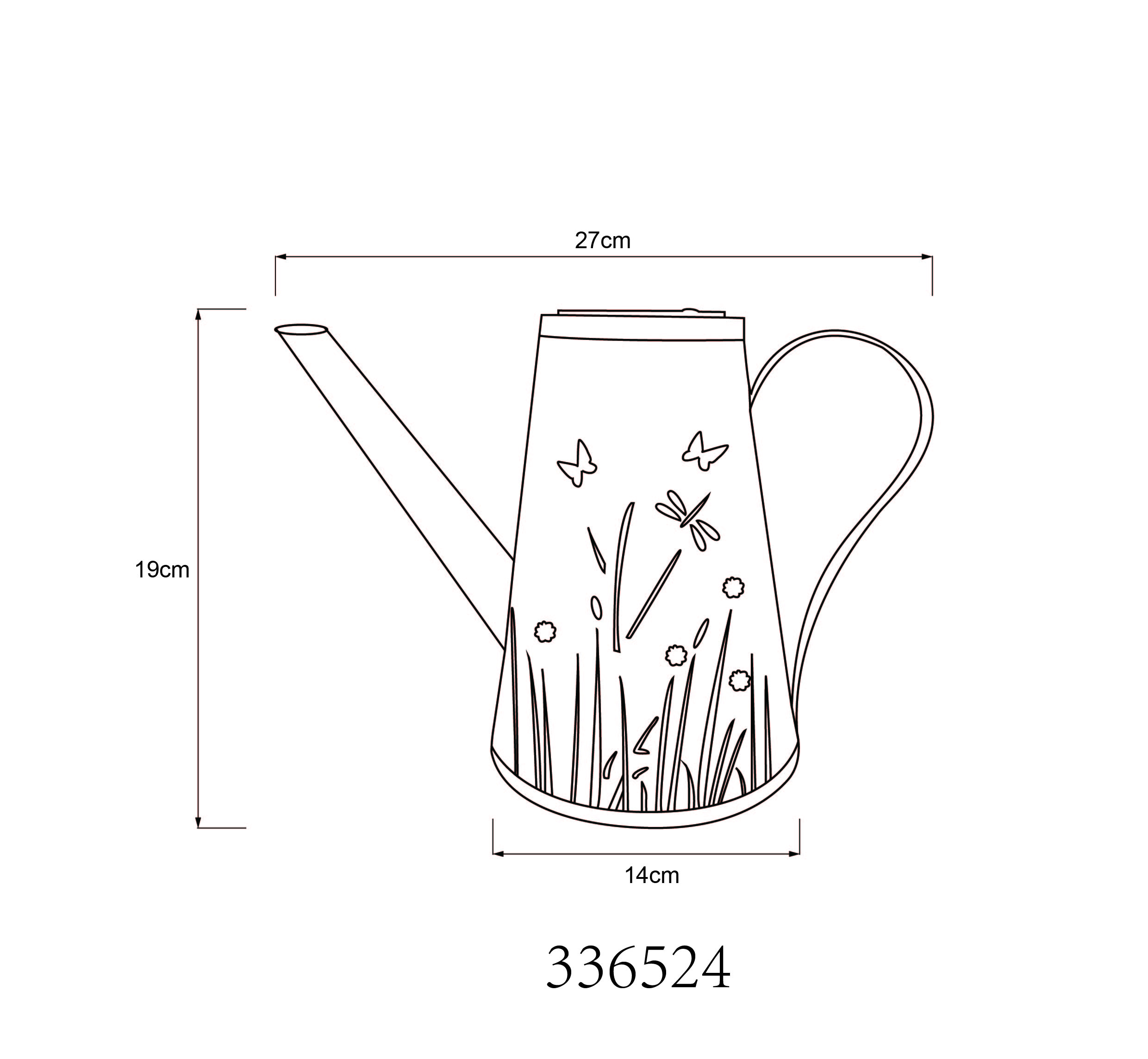 Ova solarna lampa ima metalno kućište u plavoj antiknoj boji i ukrasne udarce u bojama hrđe. Abažur je izrađen od crne plastike. Lampa ima presostat i napaja se AAA baterijom kapaciteta 300mAh i naponom od 1,2V. Zaštićen je od prskanja vode u skladu sa klasom zaštite IP44. Dimenzije lampe su DxŠxV: 270x140x190mm. Integrisani LED ima snagu od 0,03 W i temperaturu boje od 3000K.