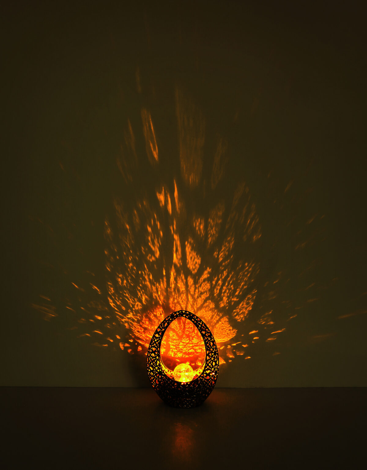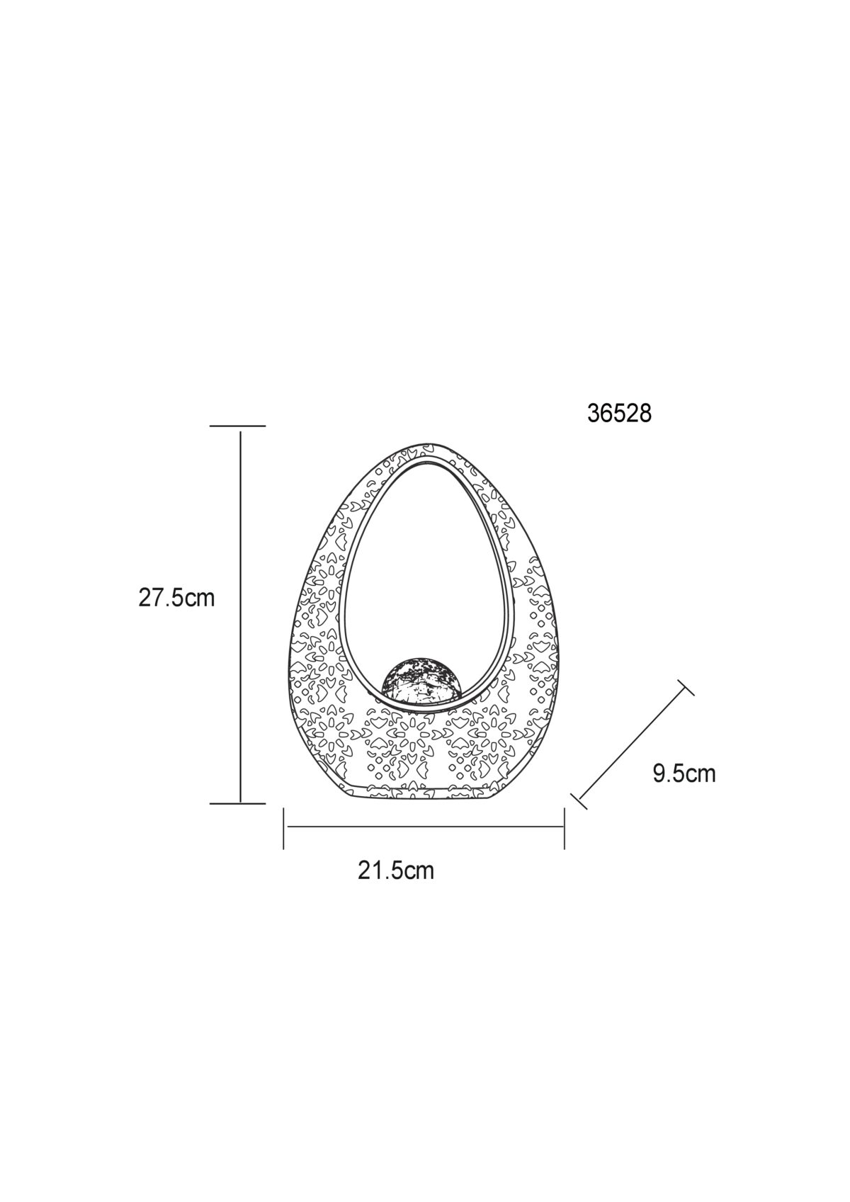 Ova izuzetno dekorativna solarna lampa inspiriše svojim sjajnim dizajnom. Ova skoro 22cm duga i 10cm široka ovalna skulptura sa prekrasnim ukrasnim udarcima ima staklenu kuglu sa LED sijalicom, koja emituje toplo bijelo svjetlo od 3000 Kelvina i na taj način pruža ugodnu atmosferu. Osim toga, ovo solarno svjetlo od 27,5 cm ima IP44 stepen zaštite od prskanja vode.