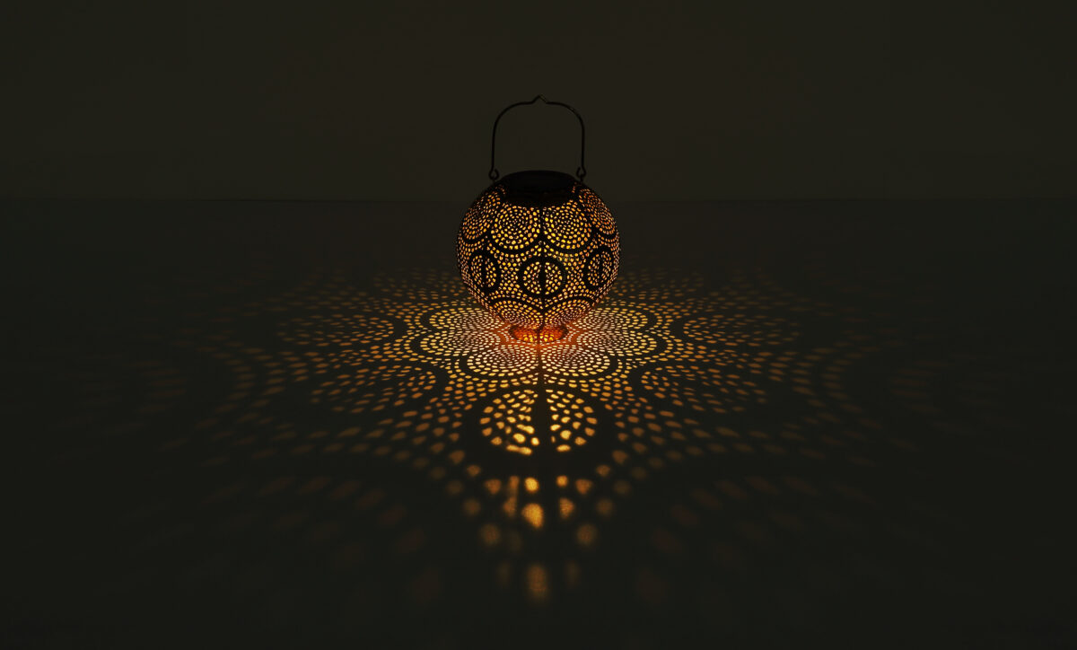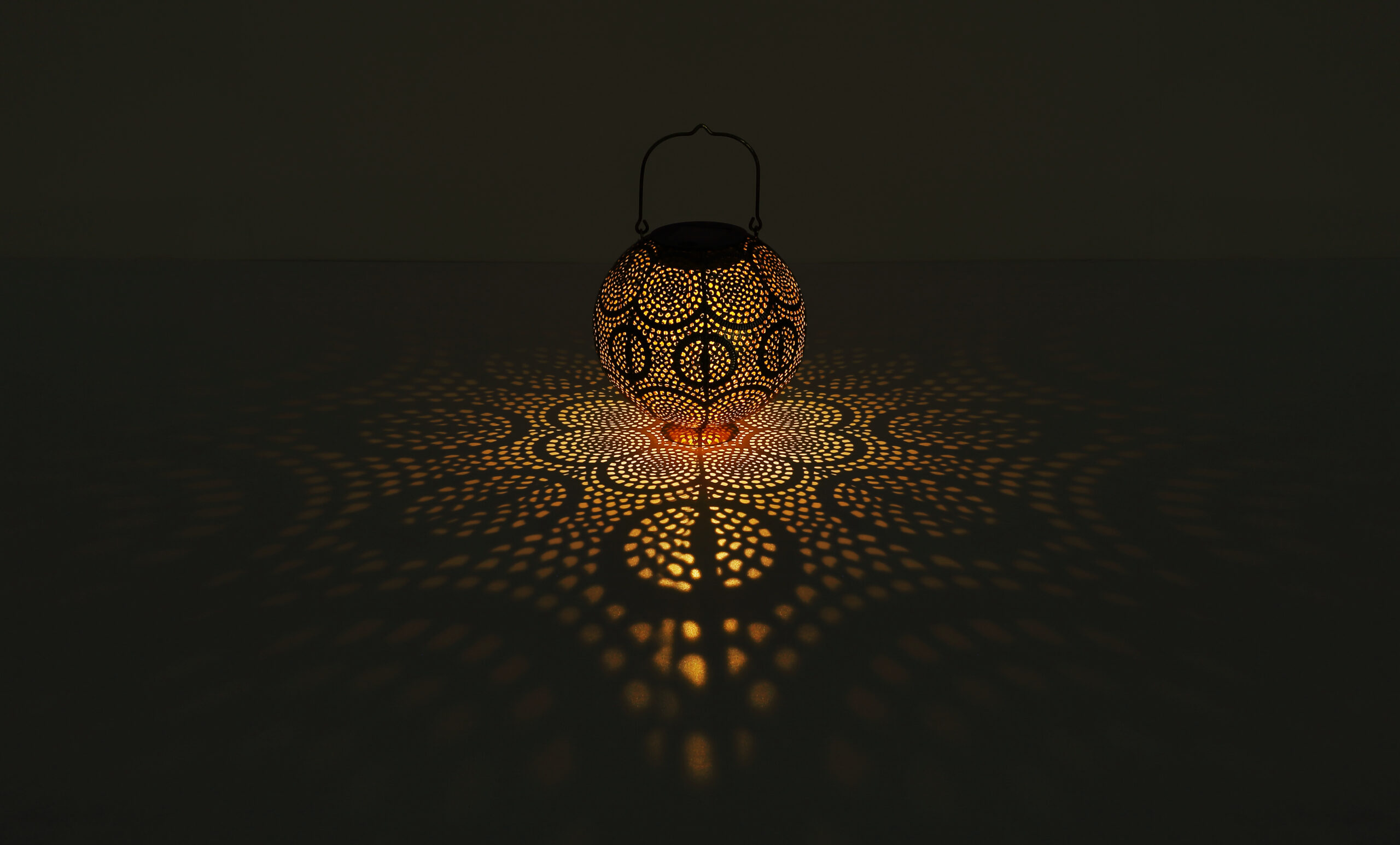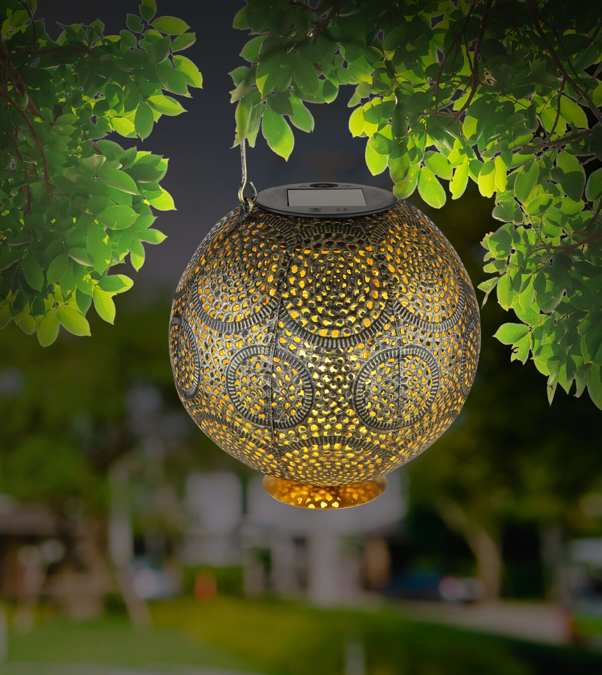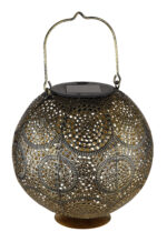 Ovo solarno svjetlo ima antiknu metalnu bazu zlatne boje s ukrasnim udarcima, crni plastični poklopac i prekidač pritiska. Lampa se napaja AA baterijom od 200mAh i 1.2V koja je uključena. Lampa ima IP44 klasu zaštite i može se postaviti ili okačiti. Dimenzije su ø185mm i H280mm. Svetiljka ima integrisanu LED sa 0,06W i naponom od 3V, koja obezbeđuje toplo belo svetlo na temperaturi od 3000K. Svetiljka se puni pomoću solarnih panela i može da skladišti energiju tokom dana da bi osvetlila noću kada je to potrebno.
