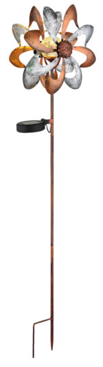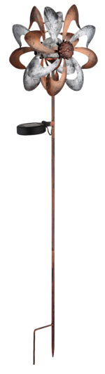 Solar Light Metal Gold Patinated kombinuje elegantan vintage stil sa modernom solarnom energijom. Ova okrugla vanjska lampa impresionira svojom umjetničkom vjetroturbinom prema Erdspitz dizajnu. Antikno metalno kućište zlatne boje daje lampi nostalgični šarm, dok zlatni i srebrni metalni sjenilo i prozirna staklena kugla dizajnirana s pucketanjem pružaju očaravajuće refleksije svjetlosti. Sa snagom od 1xLED i svetlosnom temperaturom od 3000 K, ova svetiljka pruža toplu, prijatnu svetlost. Prekidač pritiska je praktično integrisan, a svetiljka je opremljena klasom zaštite IP44 za spoljašnju upotrebu. Sa kompaktnim dimenzijama D:220mm i Š:120mm, ovo solarno svjetlo savršeno se uklapa u svaki vrt ili vanjski prostor i postavlja stilske akcente danju i noću. Idealno za ekološki prihvatljivu i elegantnu vanjsku rasvjetu.