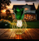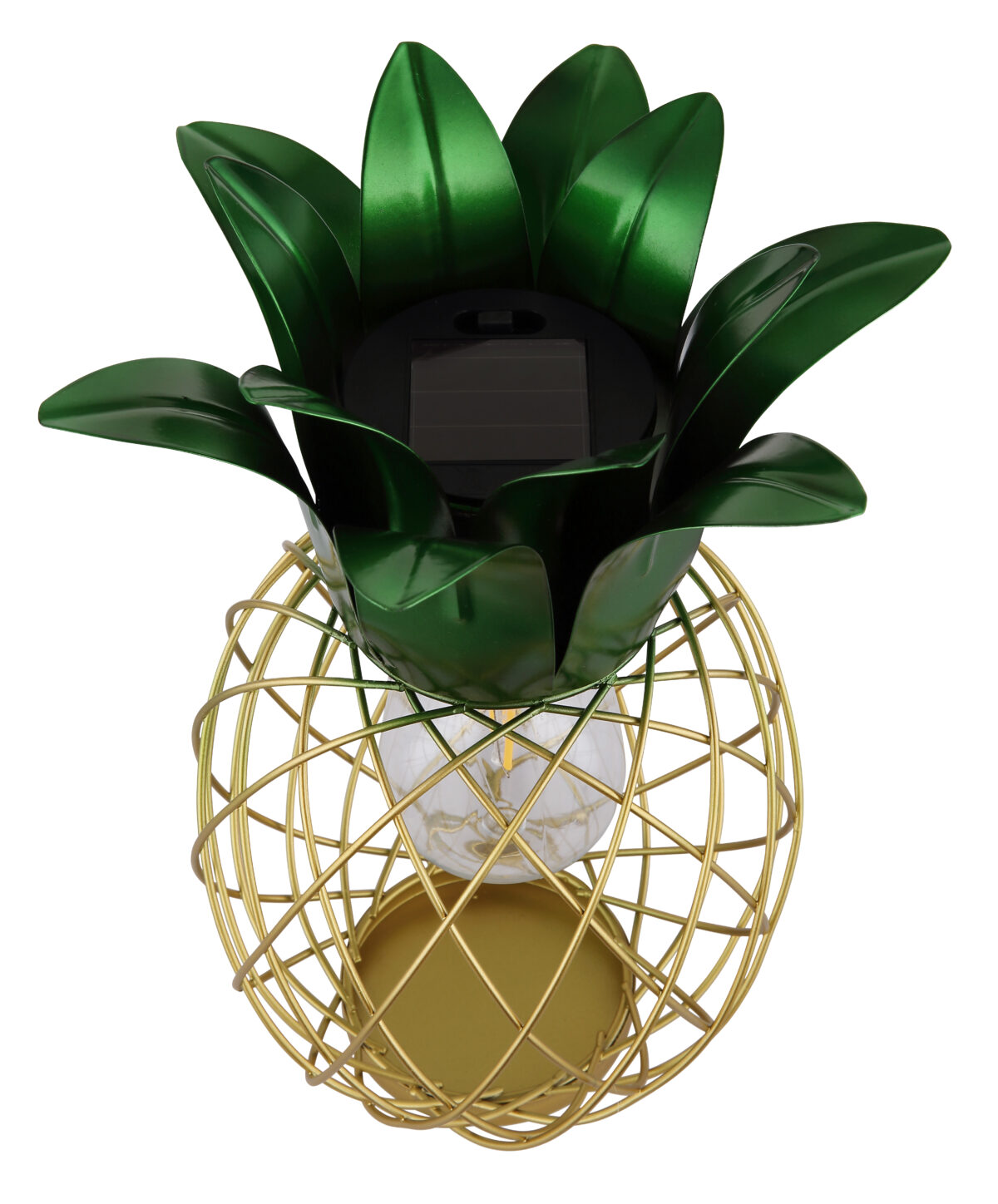 SOLARNA LAMPA METAL ZELENA u obliku ananasa donosi vesele akcente vašem vanjskom prostoru. Ova elegantna solarna lampa uvjerava svojim sjajnim metalik zelenim metalnim kućištem i jarko žutim sjenilom, koji stvara svježu, ljetnu atmosferu. Plastični sjenilo je jasno dizajniran tako da svjetlo iz integrirane LED diode dolazi na svoje i stvara ugodno osvjetljenje s temperaturom boje od 3000 K. Praktični klizni prekidač omogućava lako uključivanje i isključivanje svjetla. Sa prečnikom od 200 mm, svetiljka se može fleksibilno postaviti u bilo koji vrt ili na balkon. Zahvaljujući IP44 zaštitnoj klasi, solarno svjetlo je otporno na vremenske uvjete i stoga idealno za vanjsku upotrebu. SOLAR SVJETLO METAL GREEN nije samo praktičan izvor svjetlosti, već i dekorativni element koji će dati živu notu vašem vrtu ili terasi.