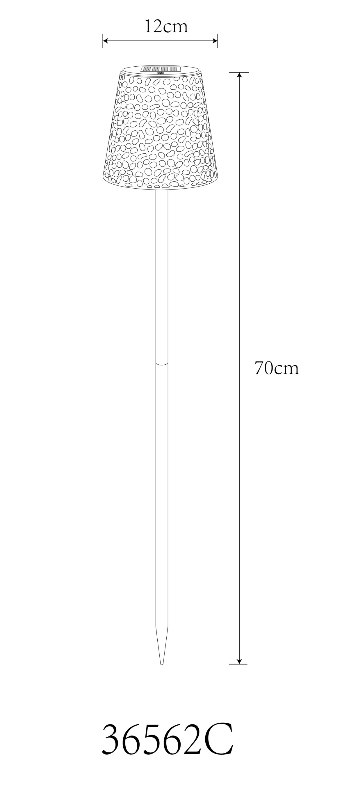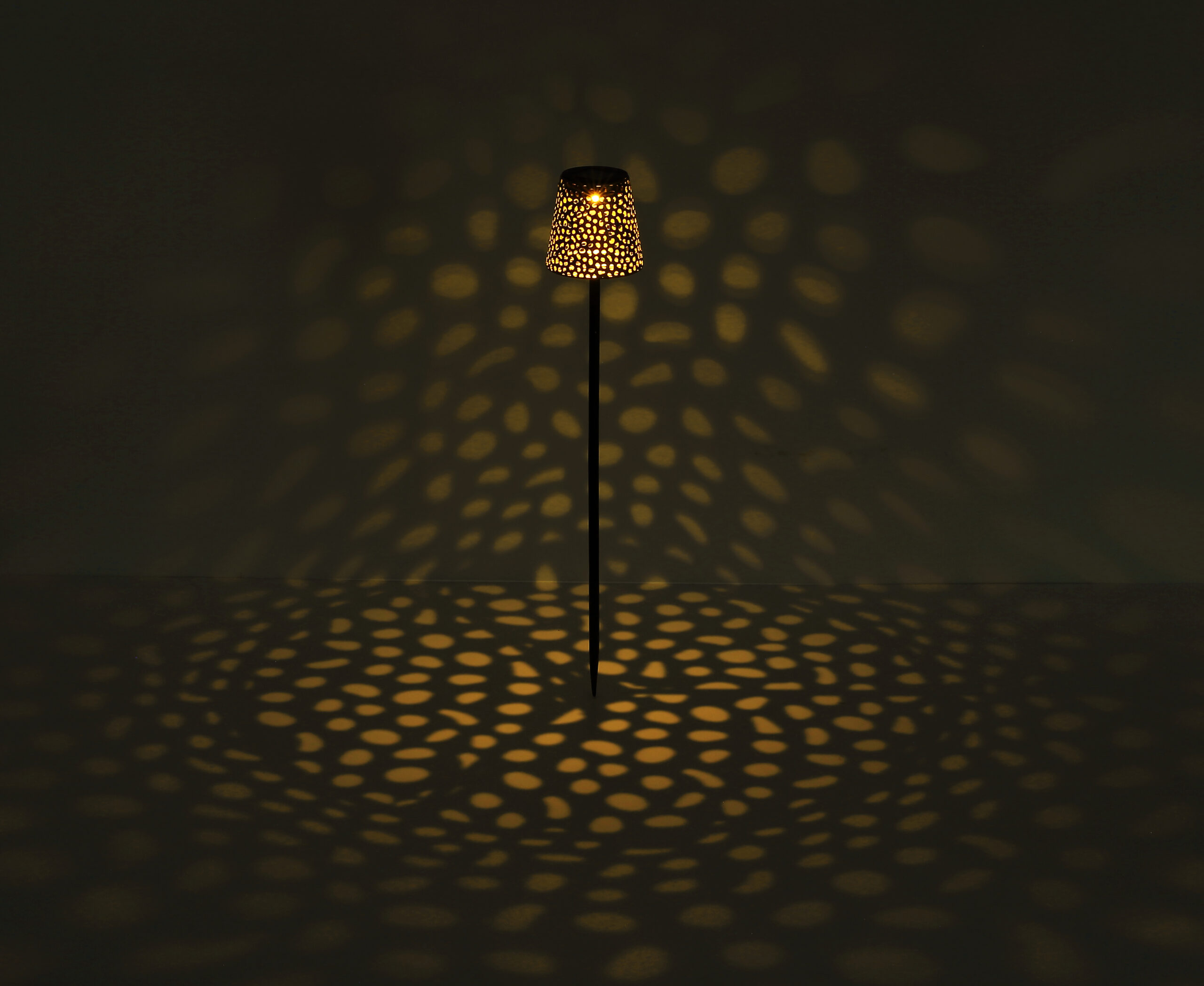 Ovo sjajno solarno svjetlo inspirira prekrasnim dizajnom. Crna mat metalna šipka viri iz zemljanog tornja i završava se na visini od 70 cm na lijepoj bakrenoj nijansi sa sjajnim ukrasnim udarcima. Pomoću integrirane LED diode, daje toplo bijelo svjetlo od 3000 Kelvina i na taj način osigurava ugodnu atmosferu. Model ima prekidač za paljenje ili gašenje svjetla po želji. Zbog IP44 stepena zaštite od prskanja vode, savršen je za upotrebu na otvorenom.
