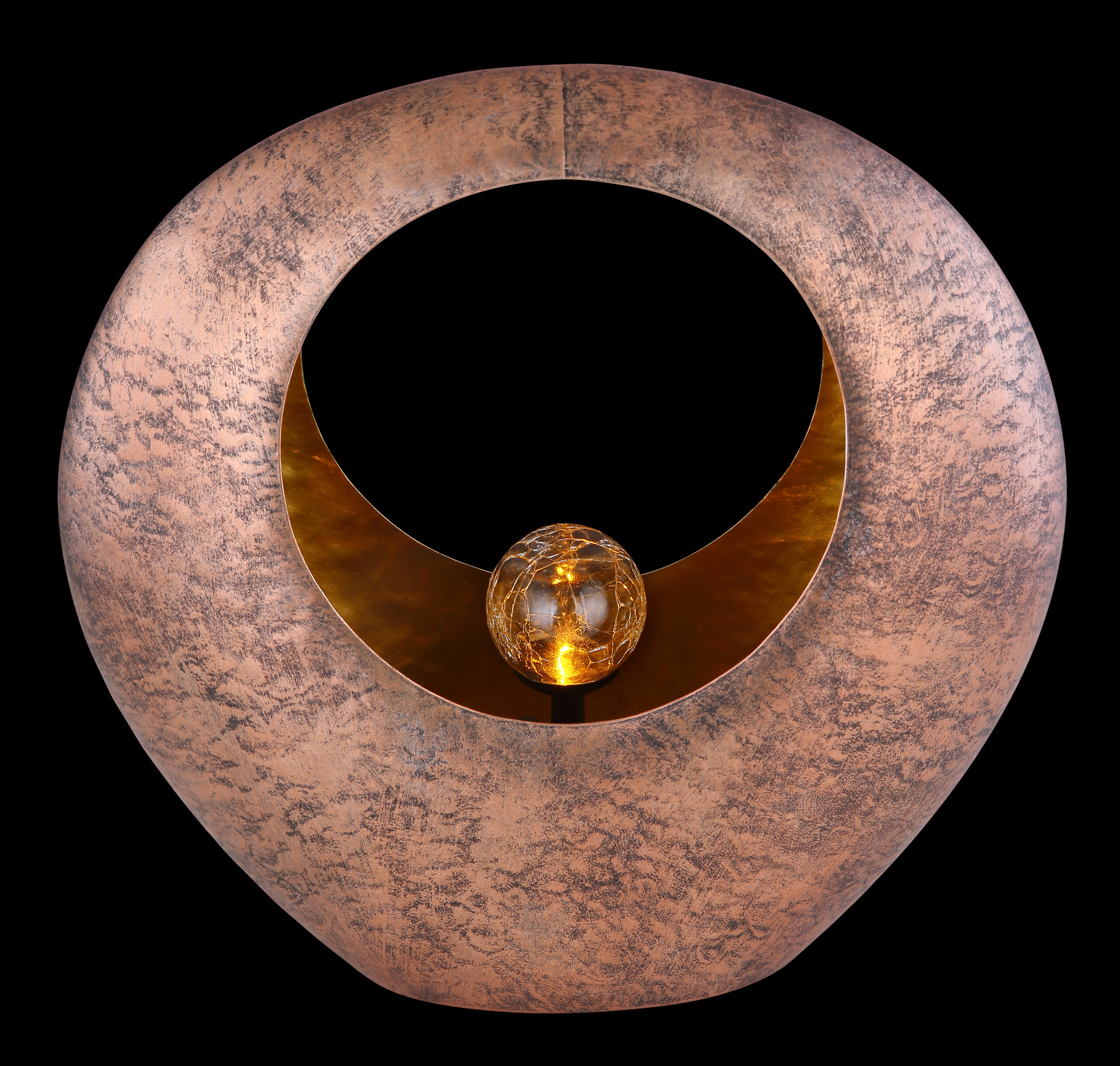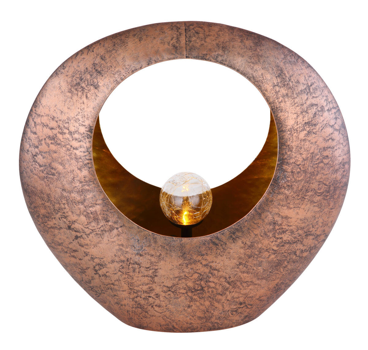 Ova solarna lampa u boji mesinga (klasa zaštite IP44) je prekrasan dodatak vašoj terasi ili vrtu. LED sijalica je okružena staklenom kuglom u prekrasnom izgledu pucketanja. Solarna lampa od 37 cm je zlatno obojena iznutra, što zajedno sa toplom bijelom svjetlošću LED žarulje (3000 Kelvina) dovodi do ugodne svjetlosne slike. Lako se može postaviti na sto ili na čvrsto tlo i doprinosi atmosferskom ambijentu u vašem vanjskom prostoru.