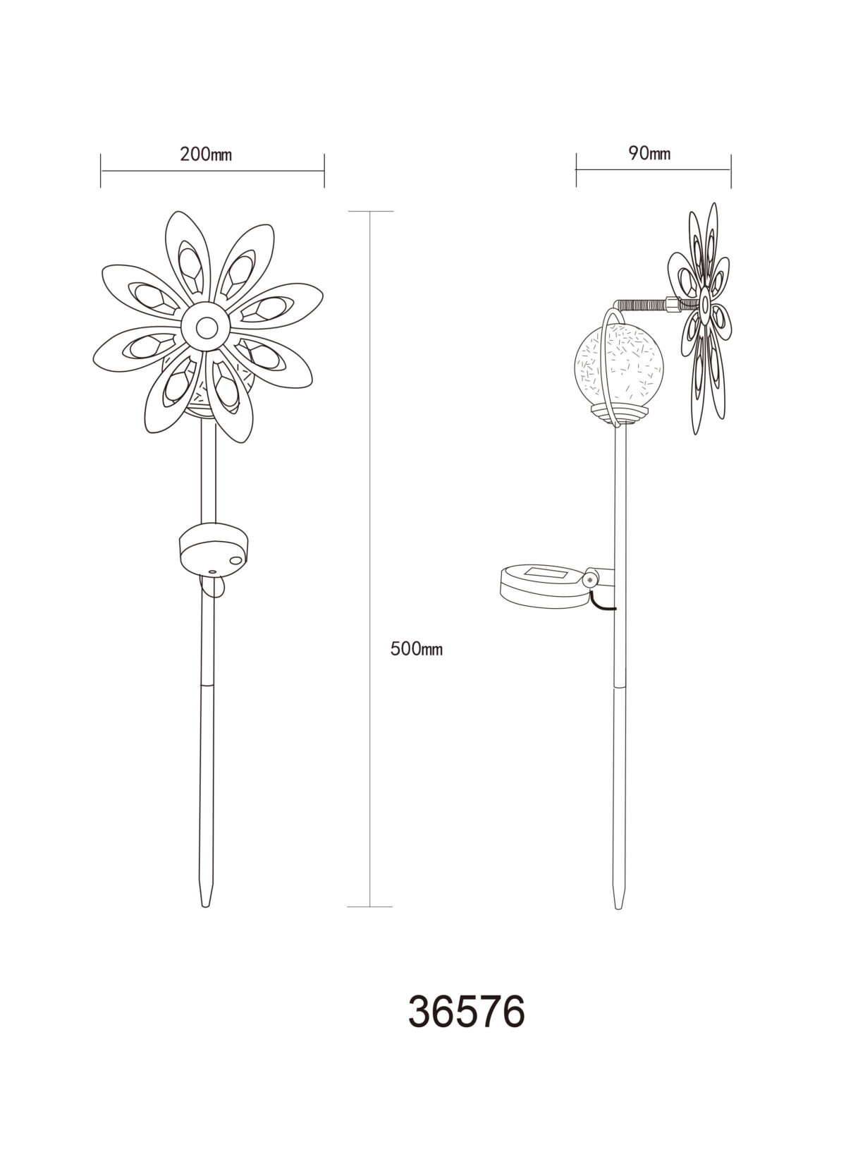 SOLAR LIGHT METAL RUST u dizajnu vjetroturbina je šarmantan dodatak vašem vrtu. Metalno kućište boje hrđe i prozirna staklena kuglasta sjenila sa žutim staklenim kristalima stvaraju toplo i privlačno osvjetljenje. Opremljen temperaturom svjetlosti od 3000K i praktičnim dugmetom, možete lako upravljati svjetiljkom. Zahvaljujući IP44 zaštitnoj klasi, otporan je na vremenske uvjete i idealan za vanjsku upotrebu.