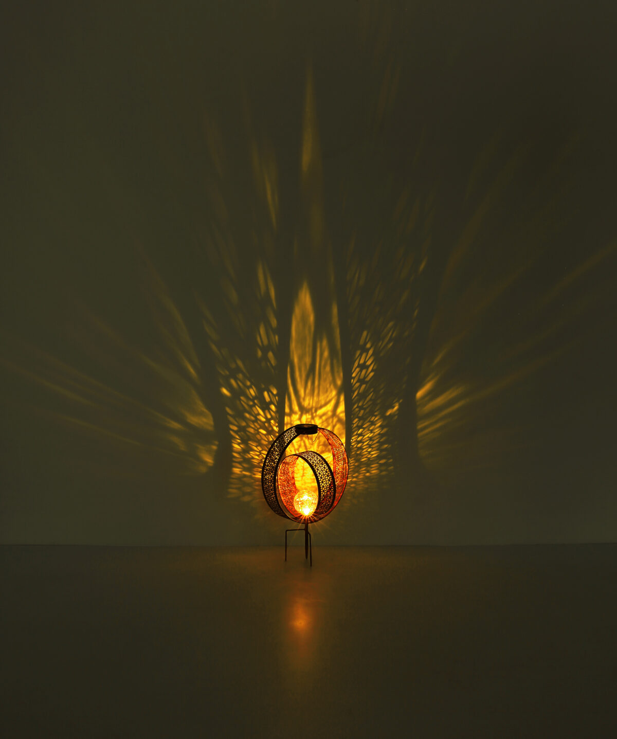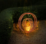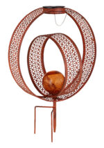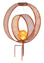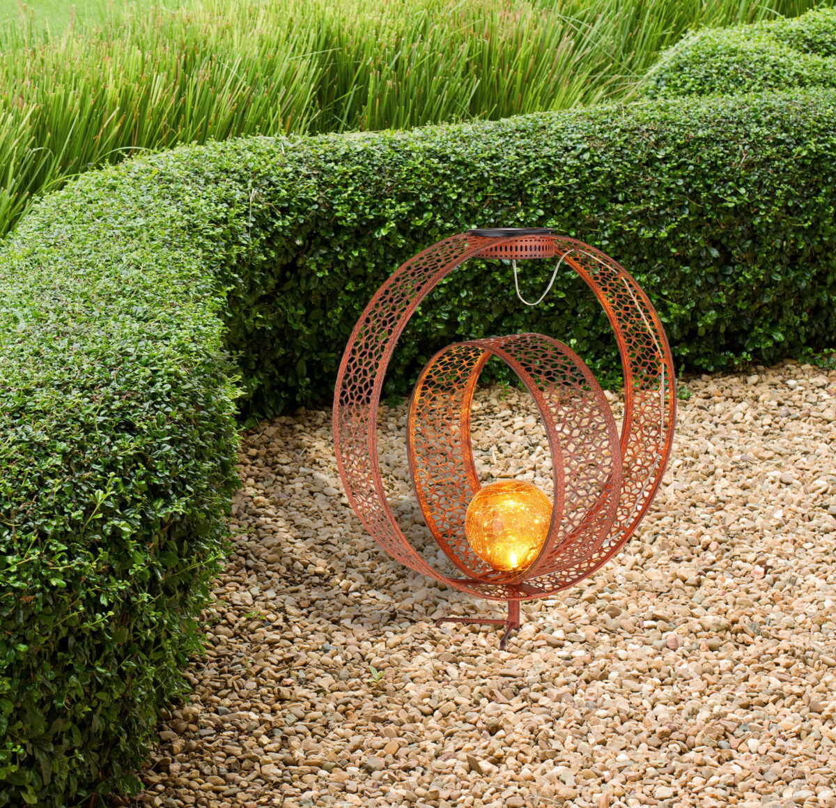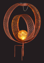 Ovo prekrasno solarno svjetlo za vanjske boje za rđu inspirira svojim prekrasnim dizajnom. Ova lampa od 42 cm sastoji se od dva metalna prstena koji se spajaju jedan u drugi sa prekrasnim šarama i sjajne LED sijalice u sredini, koja emituje prijatno toplo bijelo svjetlo od 2700 Kelvina. Pored toga, svetiljka ima zaštitu od prskanja vode (IP44).