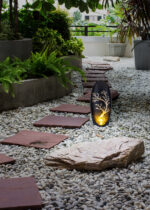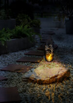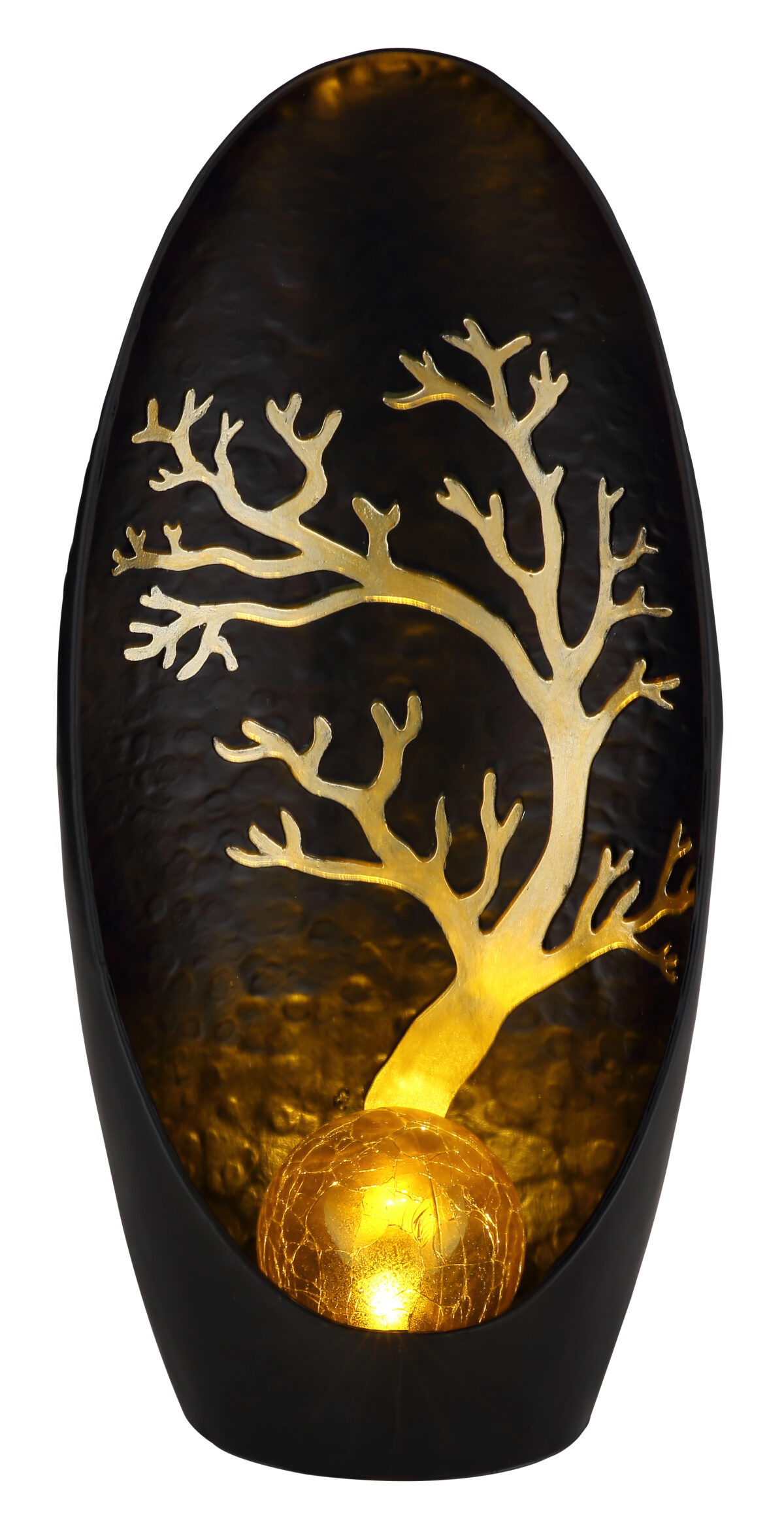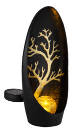 Solarna lampa u elegantnoj mat crnoj boji sa srebrno patiniranim metalom i zlatnom bojom, kao i staklo u ćilibarskom crackle-u pružaju atmosfersko osvjetljenje u vanjskom prostoru. Opremljen punjivom baterijom (AAA 200mAh 1,2V) i presostatom, jednostavan je za korištenje i zaštićen od prskanja vode zahvaljujući IP44 zaštiti. Sa dimenzijama 140x70x300mm i LED sa 0,06W, 3,2V i 3000K, može se postaviti na način koji štedi prostor i još uvijek pruža ugodno osvjetljenje.