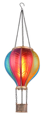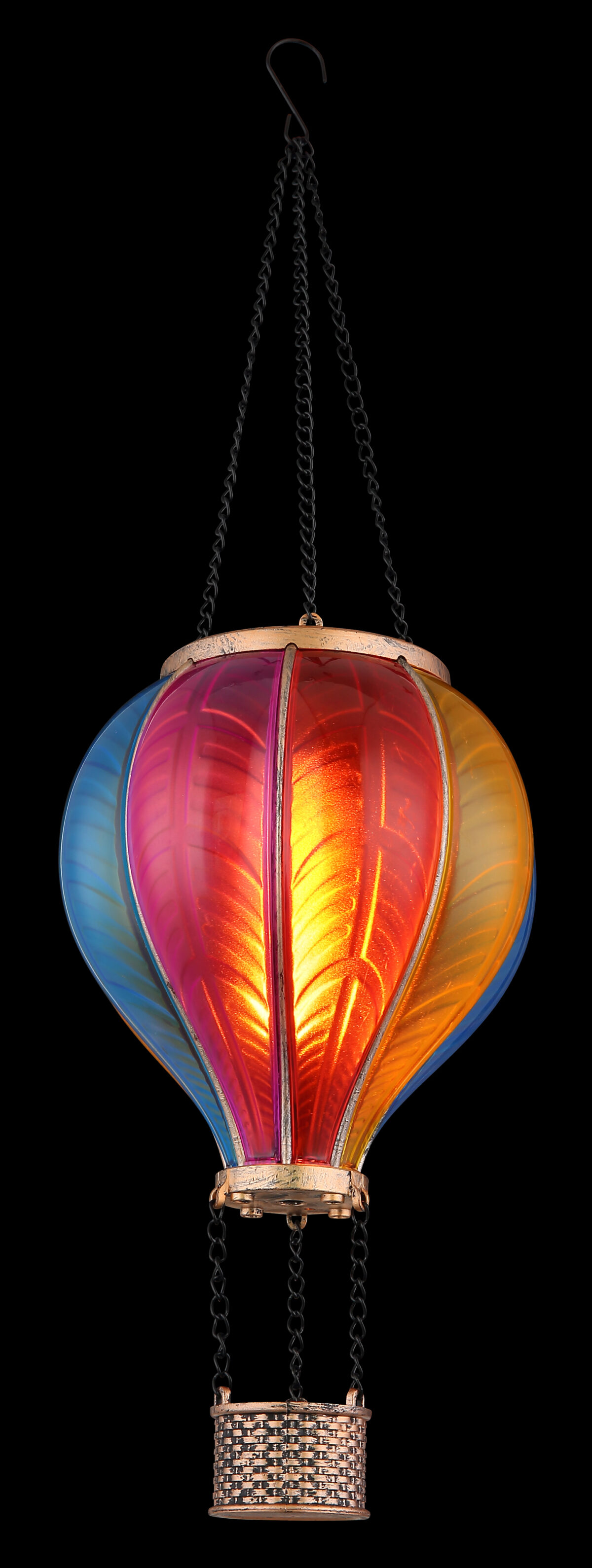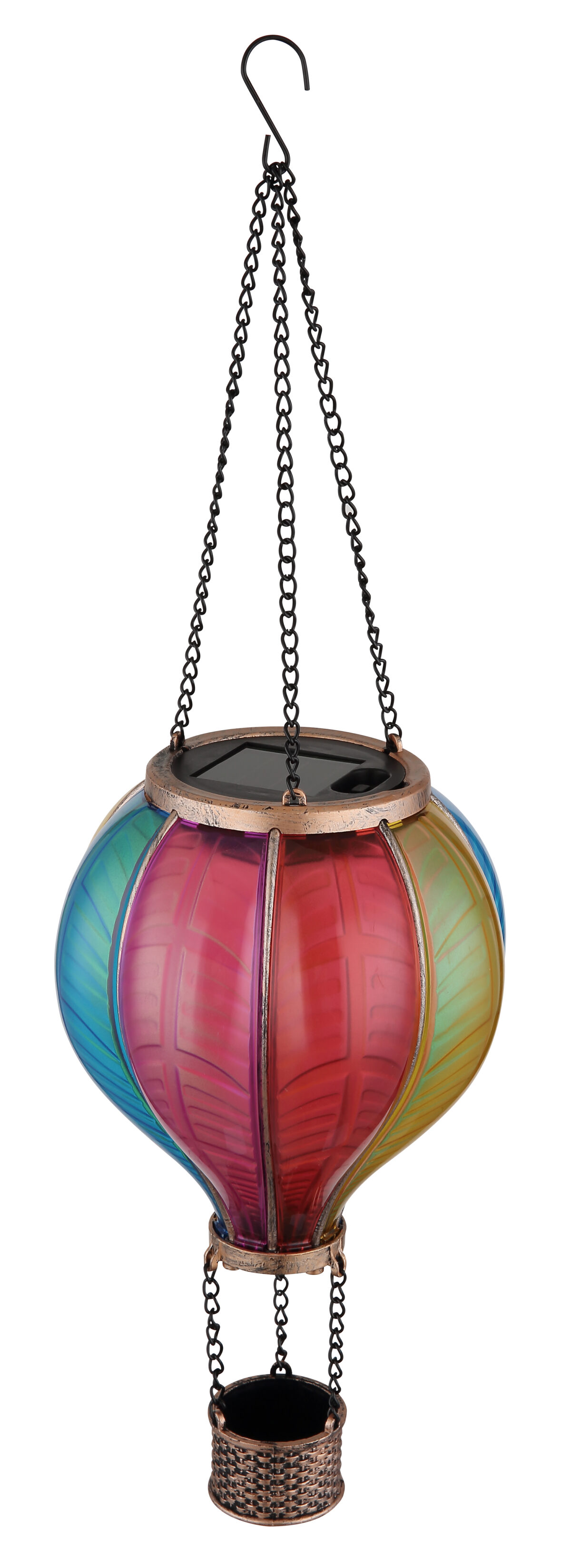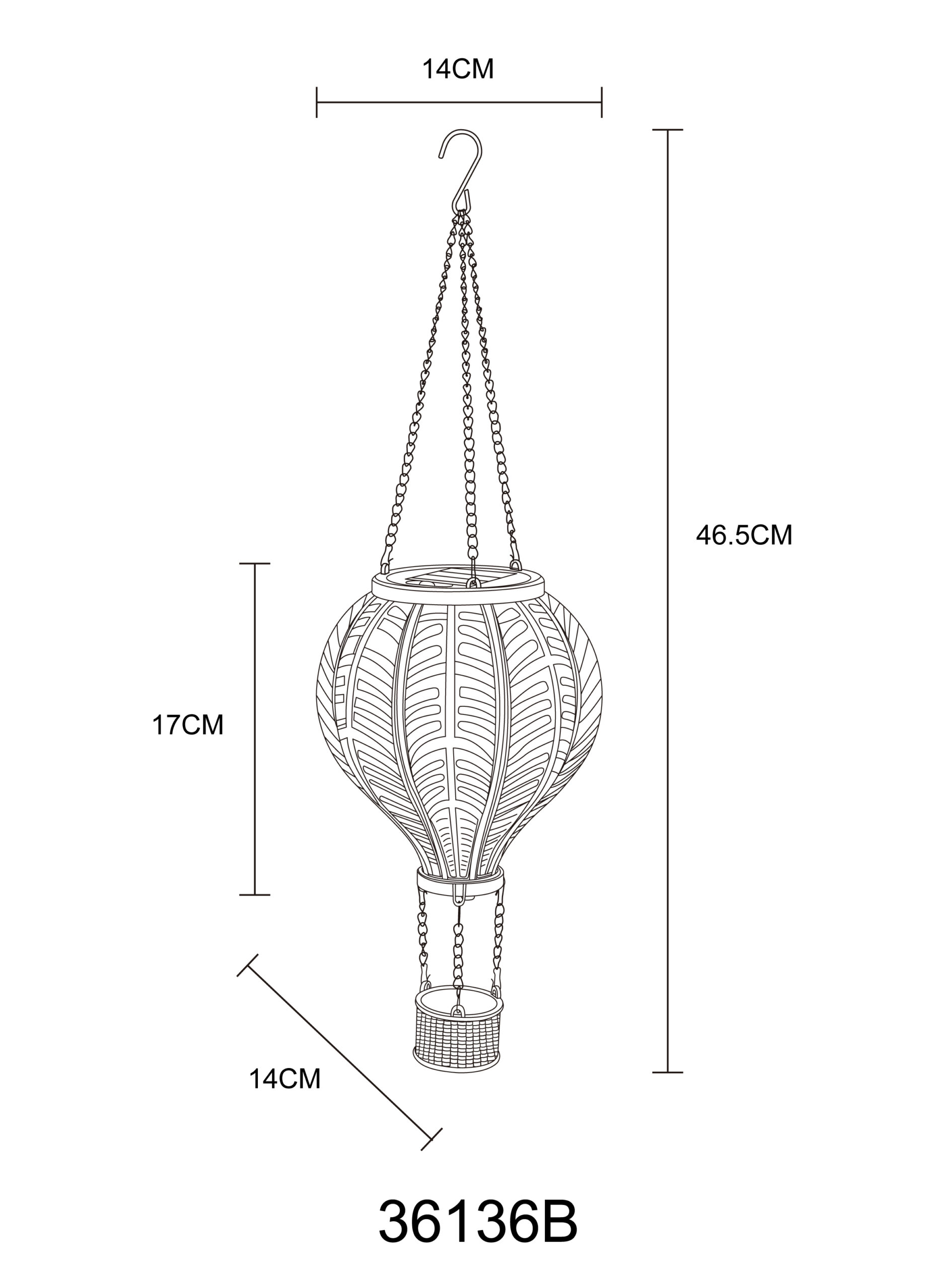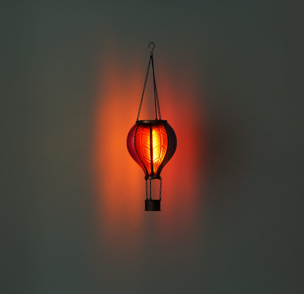 SOLARNA LAMPA METAL BLACK MAT u obliku balona na vrući zrak unosi šarmantan štih u vaš vanjski prostor. Okrugli balon s metalnim patiniranim tijelom u crnoj i zlatnoj boji dodati će elegantan akcenat vašoj terasi ili vrtu. Šarena plastična nijansa pruža svečanu igru svjetla. Sa 20 LED dioda i temperaturom mekog svjetla od 1600 K, ova svjetiljka stvara ugodnu atmosferu. Zahvaljujući dugmetu, možete lako da kontrolišete osvetljenje. Klasa zaštite IP44 osigurava da je solarna svjetlost otporna na vremenske prilike i da se može pouzdano koristiti na otvorenom.
