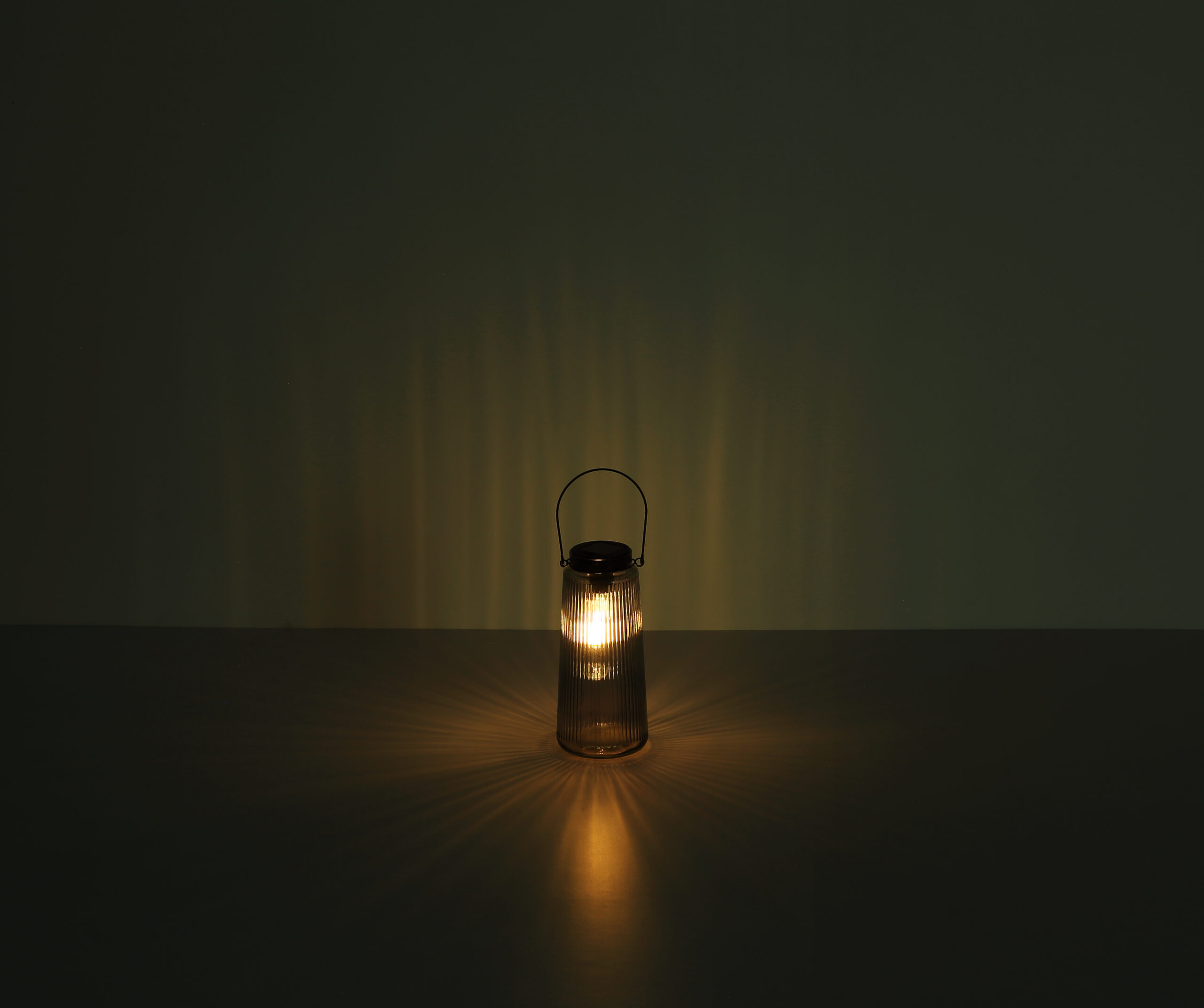 Cilindrični fenjer od mat crnog metala je atraktivan i svestran rasvjetni element za vaš dom. Opremljen sa dve LED diode koje štede energiju ukupne snage 0,5W, proizvodi toplo belo svetlo sa prijatnom temperaturom boje od 3000K. Sjenilo od stakla u boji dima i prozirne plastike daje lanternu moderan izgled i daje atmosfersko osvjetljenje. Bilo za vješanje na kuku ili za stavljanje na stol, fenjer se može postaviti fleksibilno i pogodan je za unutrašnju i vanjsku upotrebu. S praktičnim presostatom za jednostavan rad i IP44 ocjenom za vanjsku upotrebu, ovo solarno svjetlo je funkcionalno i dekorativno u isto vrijeme. Unesite ugodno svjetlo u svoj dom uz ovaj šik lampion i stvorite ugodnu atmosferu.