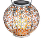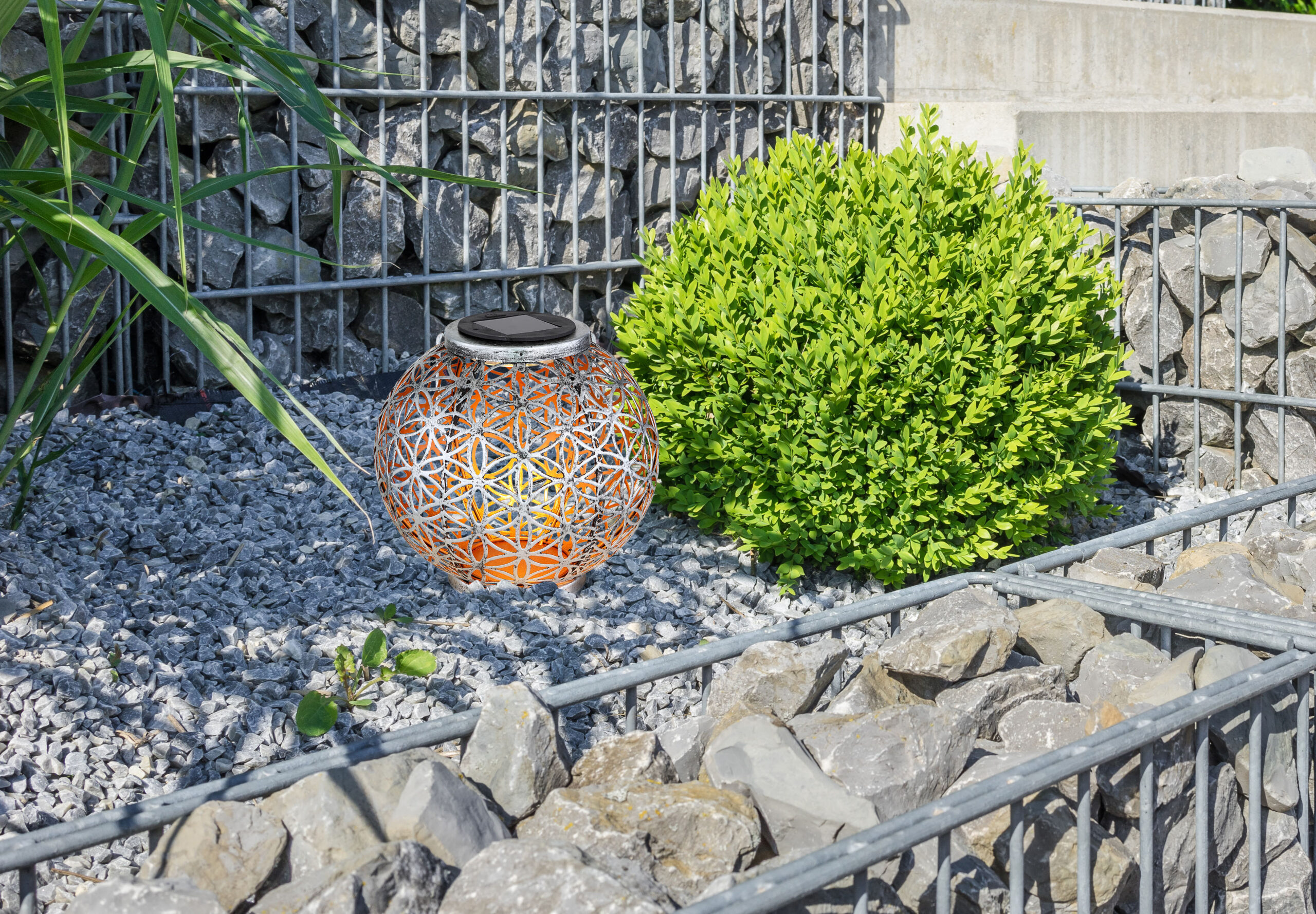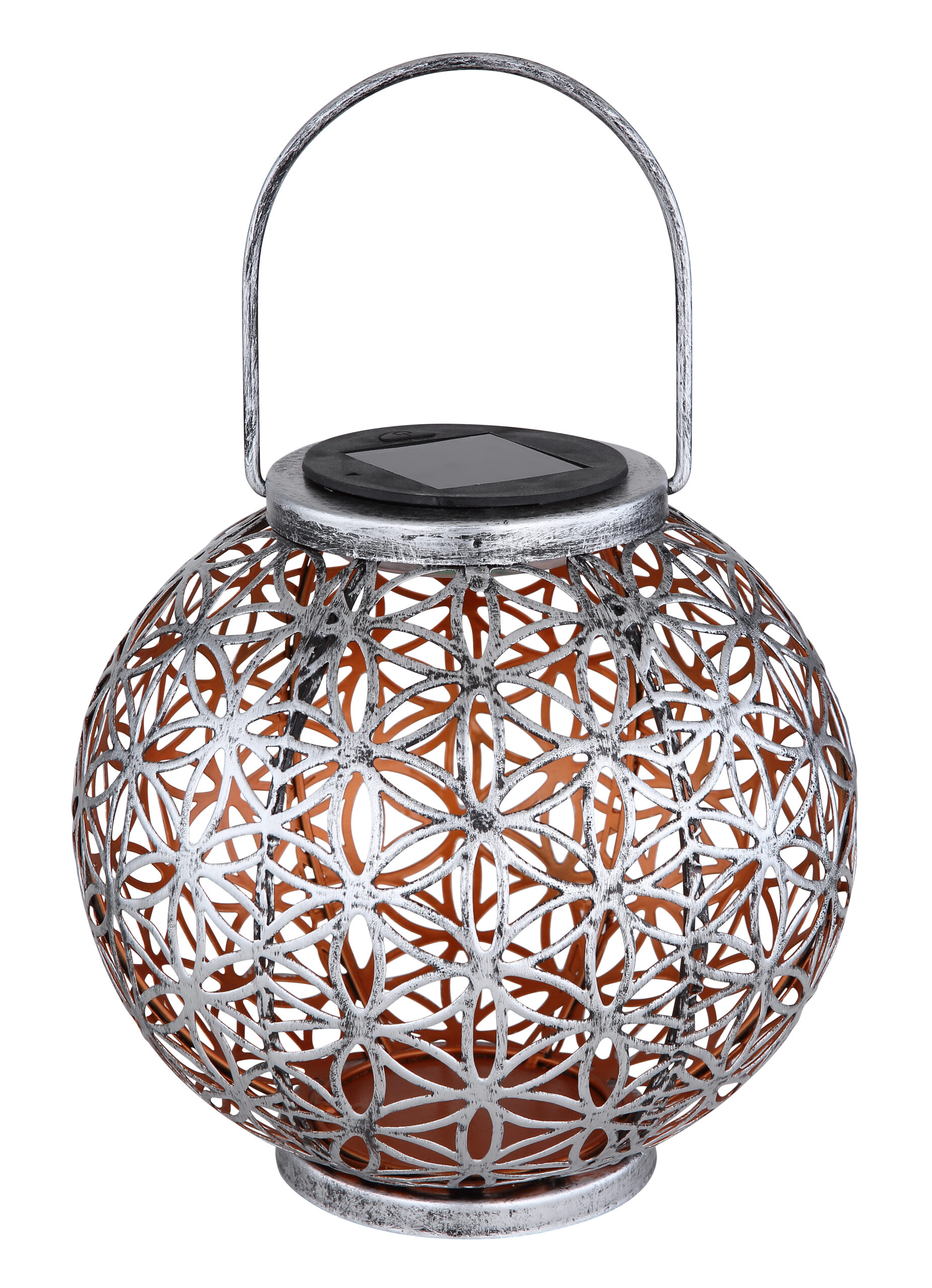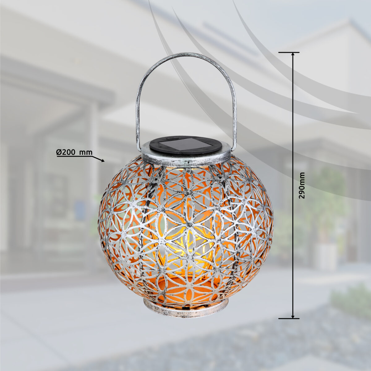 Ova prekrasna solarna lampa od metala srebrne boje sa svojim oblikom lampiona je prekrasna opcija za dekoraciju vašeg vanjskog prostora. Ova solarna lampa se u potpunosti napaja solarnom energijom i može svijetliti do 8 sati kada je baterija potpuno napunjena. Bilo da ovu antiknu solarnu lampu postavite u svoj ulazni prostor, baštu ili balkon, garantovano će privući oči. Zahvaljujući stepenu zaštite IP44, ova svjetiljka je zaštićena od prskanja vode i stoga se može koristiti na otvorenom bez oklevanja.