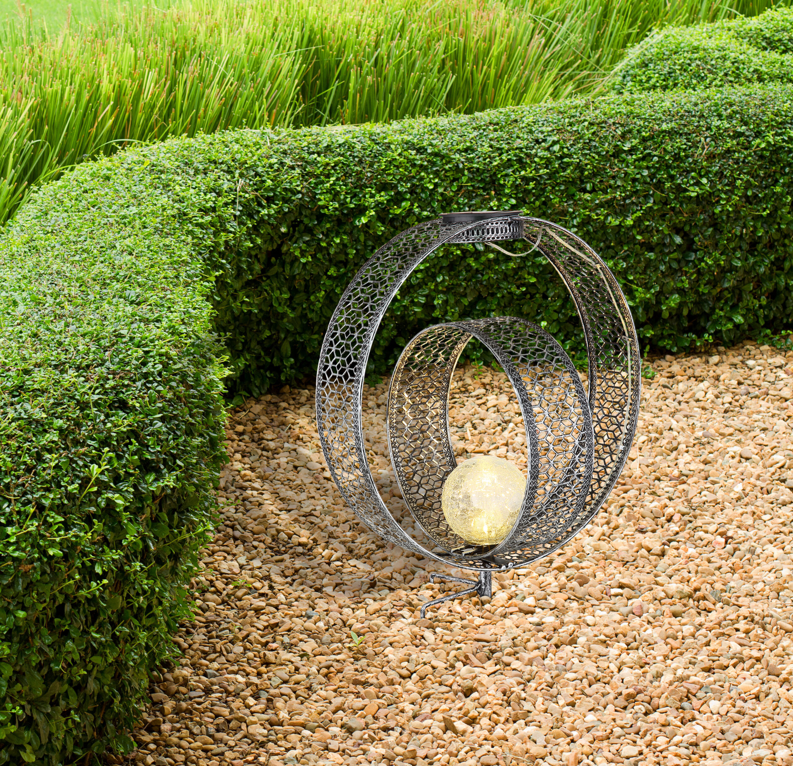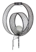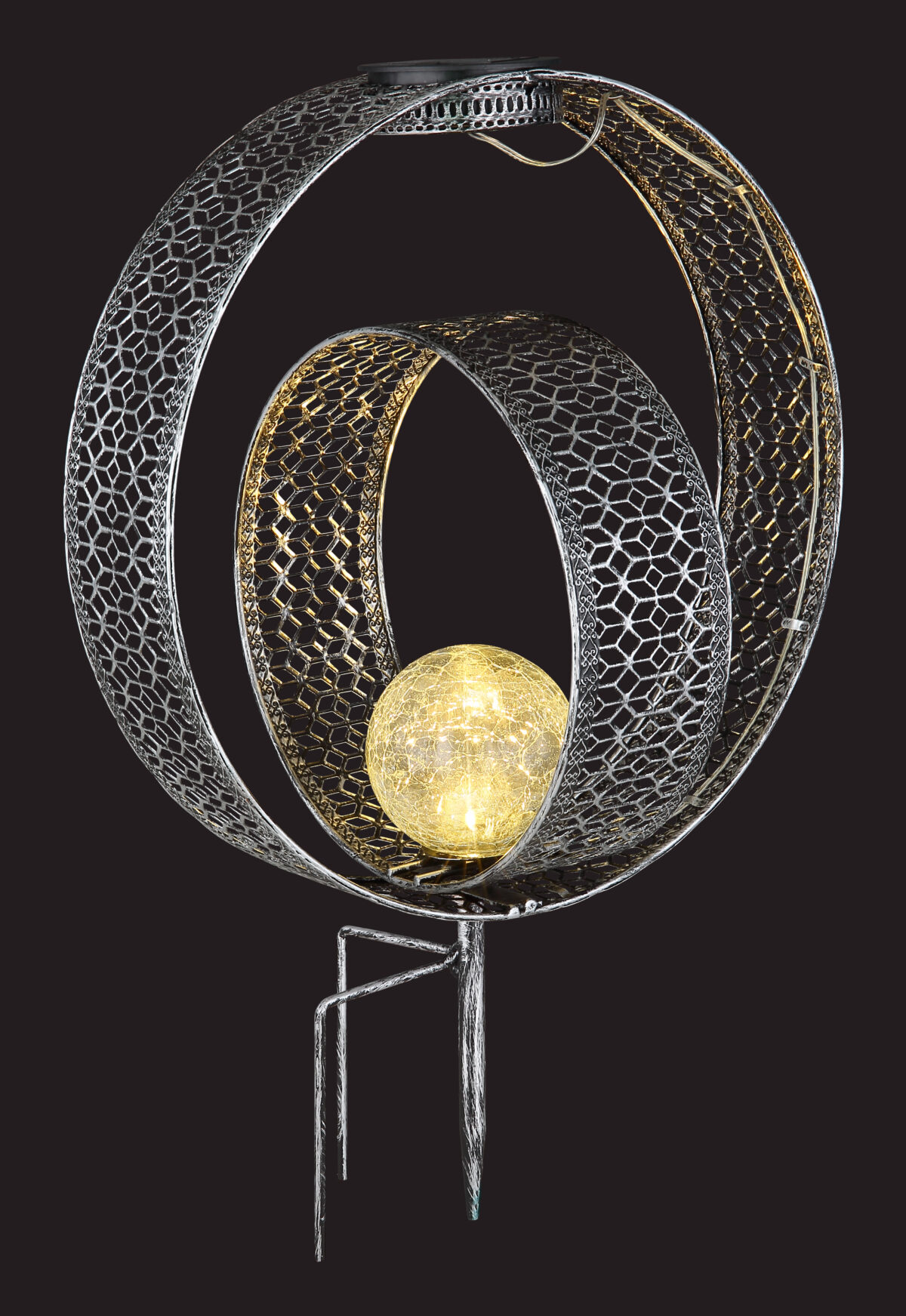 Ovo prekrasno solarno svjetlo za vanjsku upotrebu u srebrnoj boji inspirira svojim prekrasnim dizajnom. Ova lampa od 42 cm sastoji se od dva međusobno povezana metalna prstena sa prekrasnim šarama i prelepe LED sijalice u sredini, koja emituje prijatno toplo belo svetlo od 2700 Kelvina.
