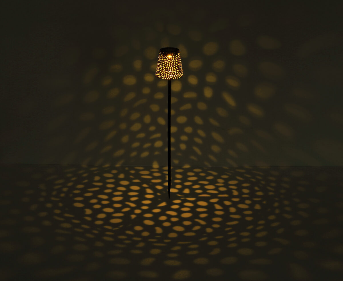 Ovo sjajno solarno svjetlo inspirira prekrasnim dizajnom. Crna mat metalna šipka viri iz zemljanog tornja i završava se na visini od 70 cm na lijepoj srebrnoj nijansi sa sjajnim ukrasnim udarcima. Pomoću integrirane LED diode, daje toplo bijelo svjetlo od 3000 Kelvina i na taj način osigurava ugodnu atmosferu. Model ima prekidač za paljenje ili gašenje svjetla po želji. Zbog IP44 stepena zaštite od prskanja vode, savršen je za upotrebu na otvorenom.