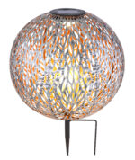 Ovo je solarna lampa rustičnog izgleda. Sijalica je okružena metalnom kuglom u srebrno sivoj boji i predstavlja prekrasan dodatak svakom domu. Zahvaljujući integrisanoj bateriji, ova LED lampa za ražanj sa solarnom energijom i bez dosadnog polaganja kablova može da dovede do 8 sati u vašu baštu ili balkon. Osim toga, svjetiljka je otporna na prskanje zbog stepena zaštite IP44 i stoga je odlično prikladna za upotrebu na otvorenom.
