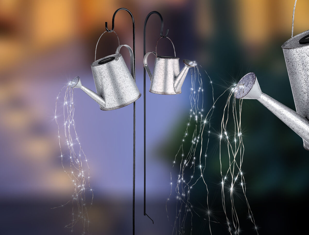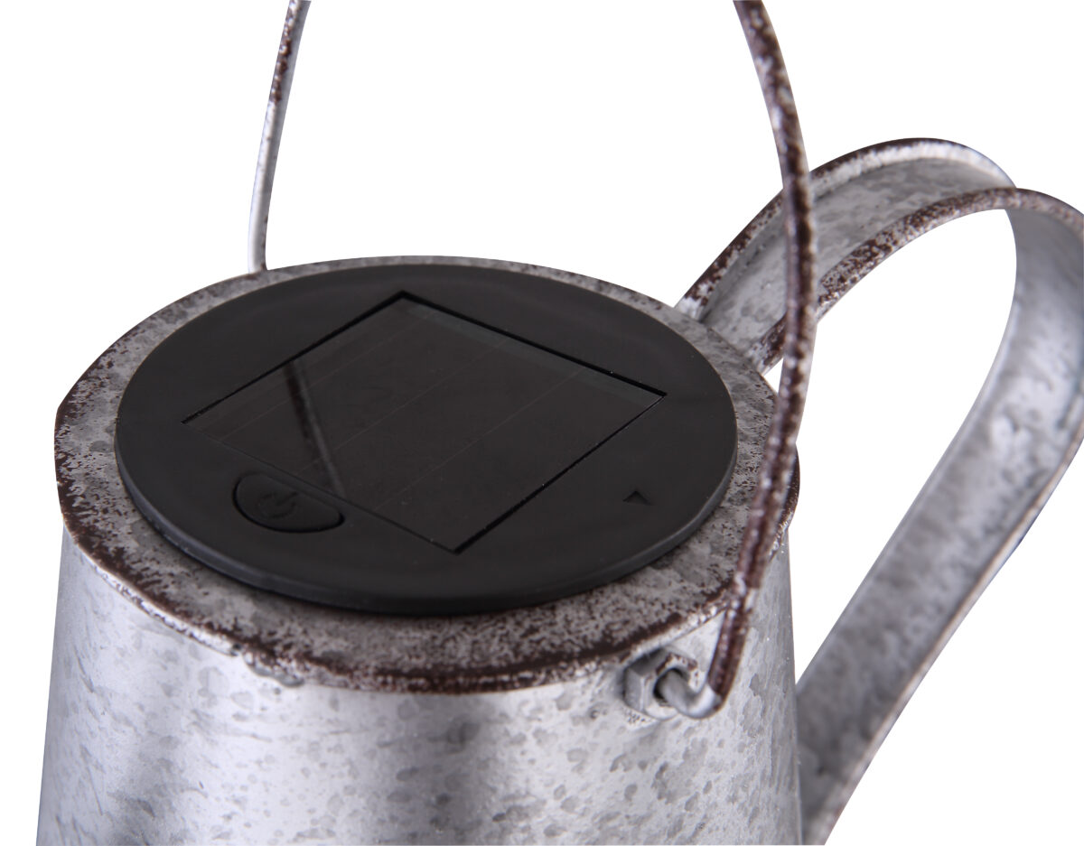 Ova LED kanta za zalijevanje je prava privlačnost za oči u svakom vrtu. Niz svjetala je postavljen tako da izgleda kao da voda teče iz kanea. Na vrhu se nalazi solarni panel, koji prikuplja sunčevu svjetlost tokom dana i može širiti svoju toplu svjetlost u večernjim satima uz puno punjenje do 8 sati. Šiljak za zemlju daje LED solarnom svjetlu čvrsto i sigurno postolje u zemlji. Budući da je potpuno nezavisan od električne mreže, može se postaviti bilo gdje u vanjskom prostoru. Zahvaljujući stepenu zaštite IP44, ova dekorativna lampa je idealna za spoljašnju upotrebu