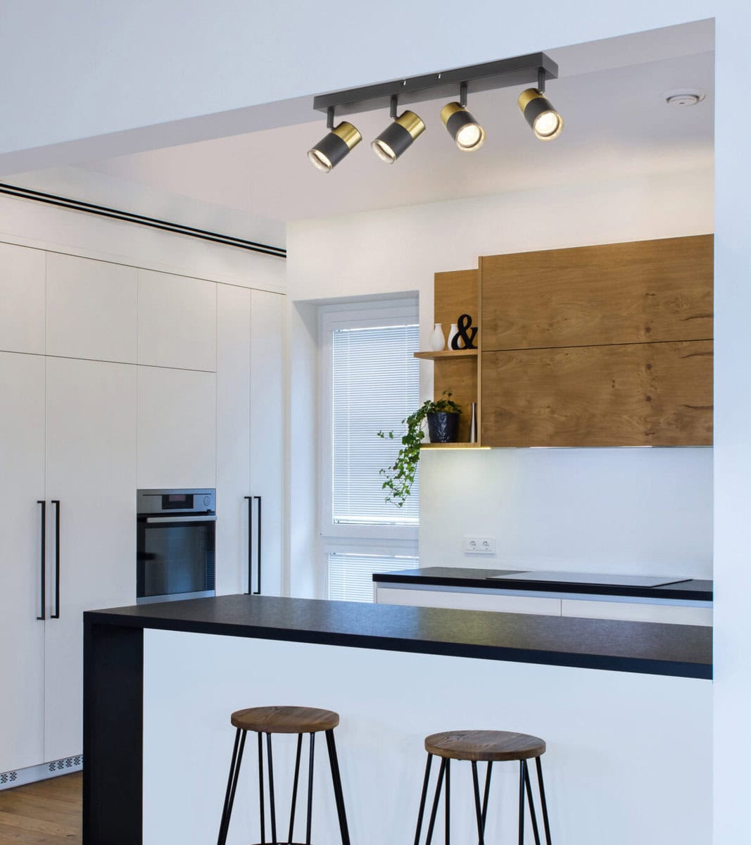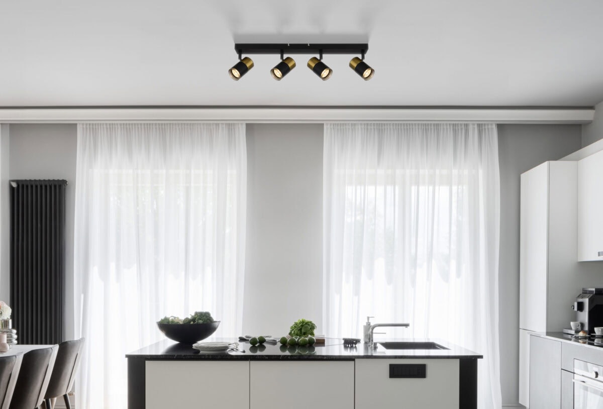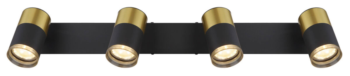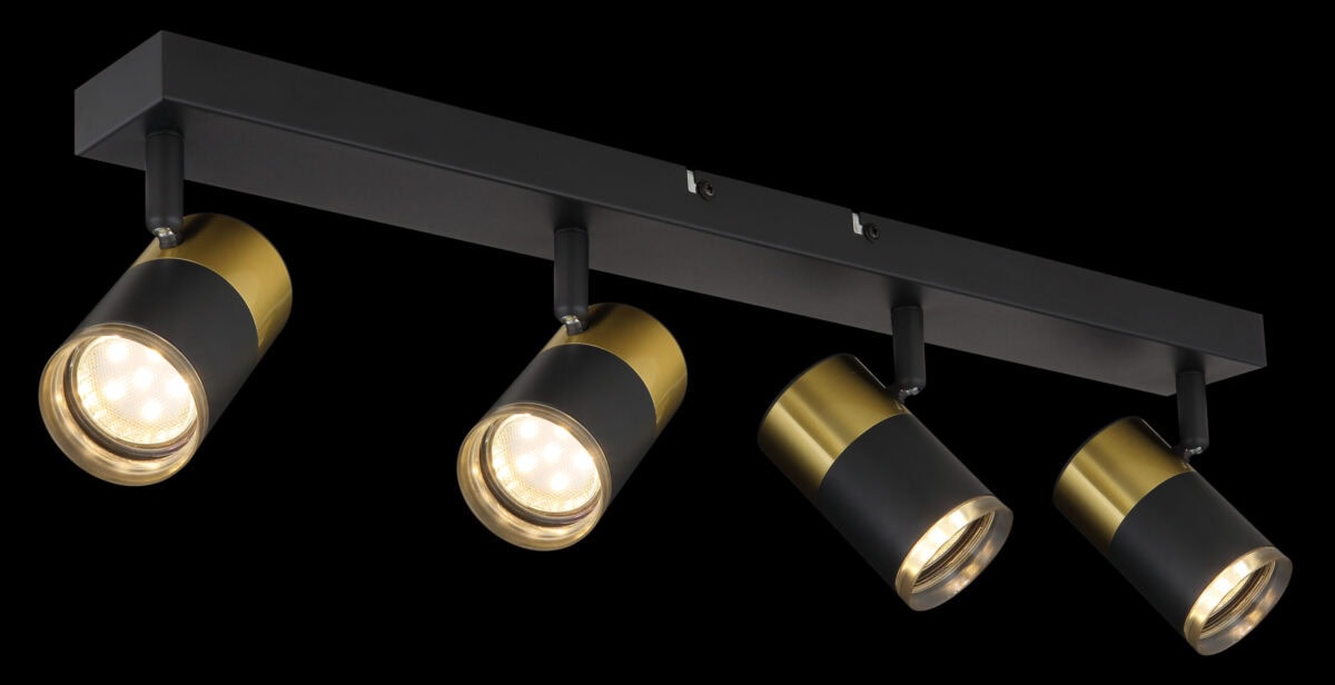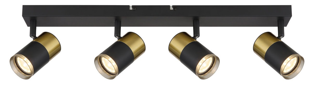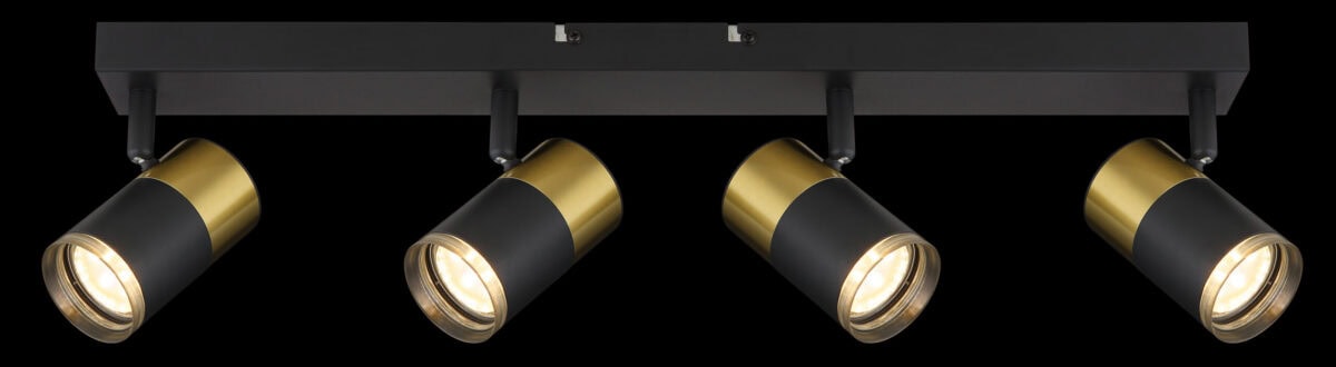 Pravokutni zidni natpis sa cilindričnim reflektorima i ukrasnim prstenom nudi elegantno i moderno rješenje za osvjetljavanje vaših soba sa stilom. Četiri reflektora imaju kućište od mat crnog metala i sjenila od aluminija u mat finišu u boji bakra, kao i crne aluminijske i plastične sjenila u boji dima. Sa širinom od 60 mm i dužinom od 560 mm, ovi reflektori savršeno pristaju na zid i pružaju ugodno osvjetljenje. Svakom reflektoru je potrebna snaga od 25 W kako bi se osigurala dovoljna svjetlina. Dekorativni prsten daje reflektorima poseban štih i postavlja stilske akcente u vašem domu. Unesite svjetlost u svoj životni ambijent pomoću ovih modernih reflektora i stvorite ugodnu atmosferu.