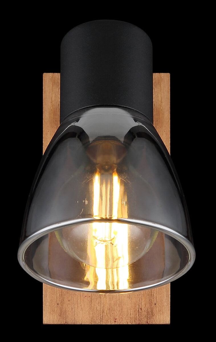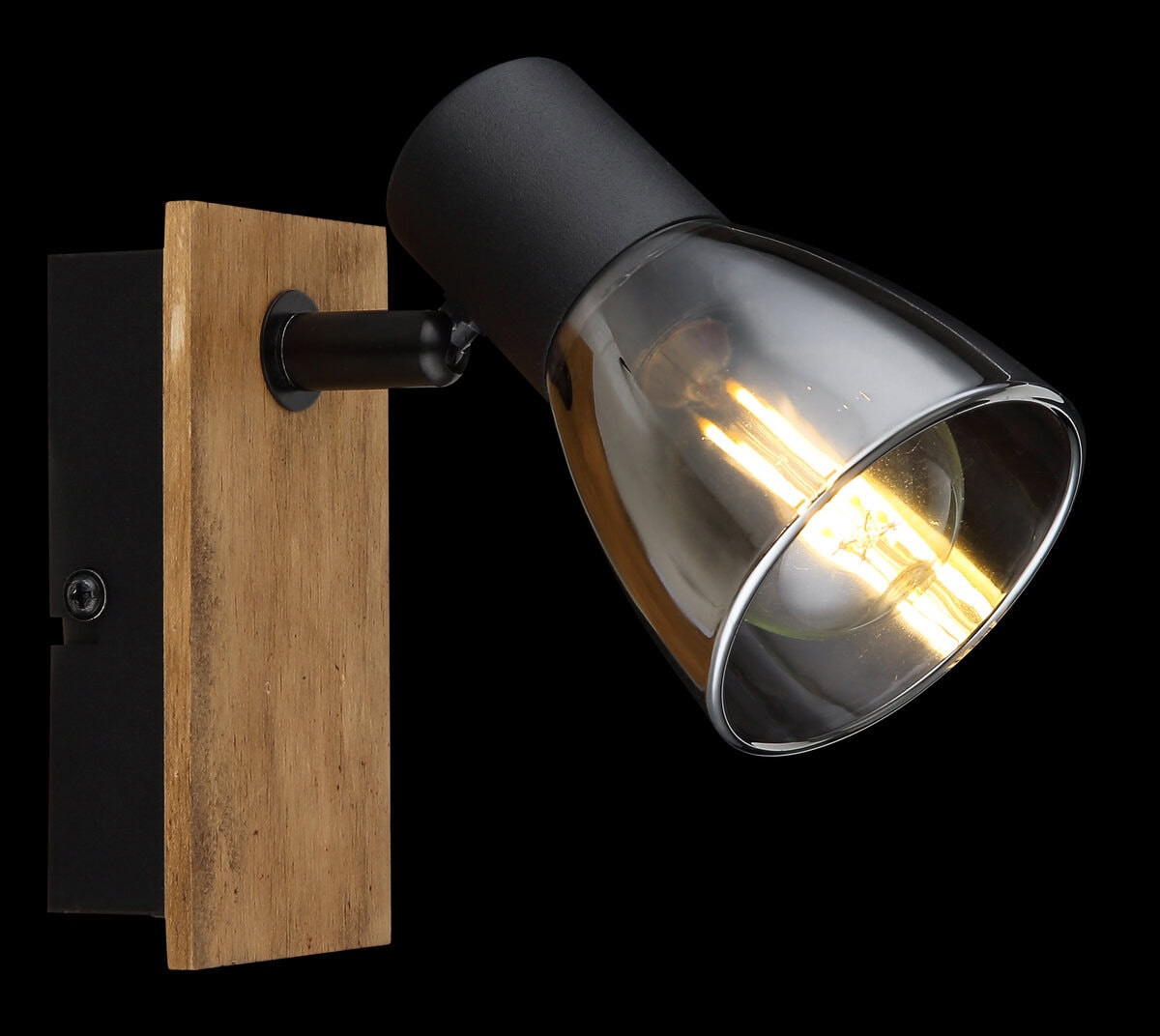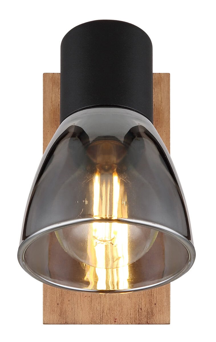 Ovaj prelijepi reflektor Claude serije od crnog metala i drveta inspiriše sjajnim dizajnom. Na pravougaonom zidnom nastavku sa drvenim ukrasima (14x7cm) nalazi se prevjes od 15,5cm E14 utičnica sa prekrasnim staklenim abažurom u dimnim bojama (Ø7cm). Svetiljka se uključuje pomoću prekidača za uključivanje/isključivanje. E14 utičnica vam daje priliku da odredite boju i svjetlinu do maksimalne snage od 40 vati. Sa ostalim modelima ove serije možete odlično upotpuniti svoj dnevni boravak.
