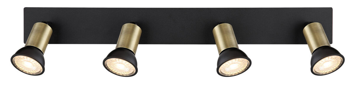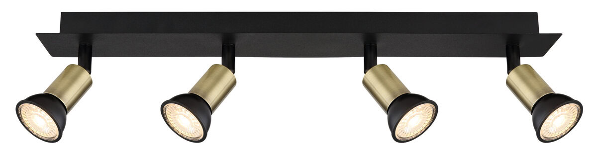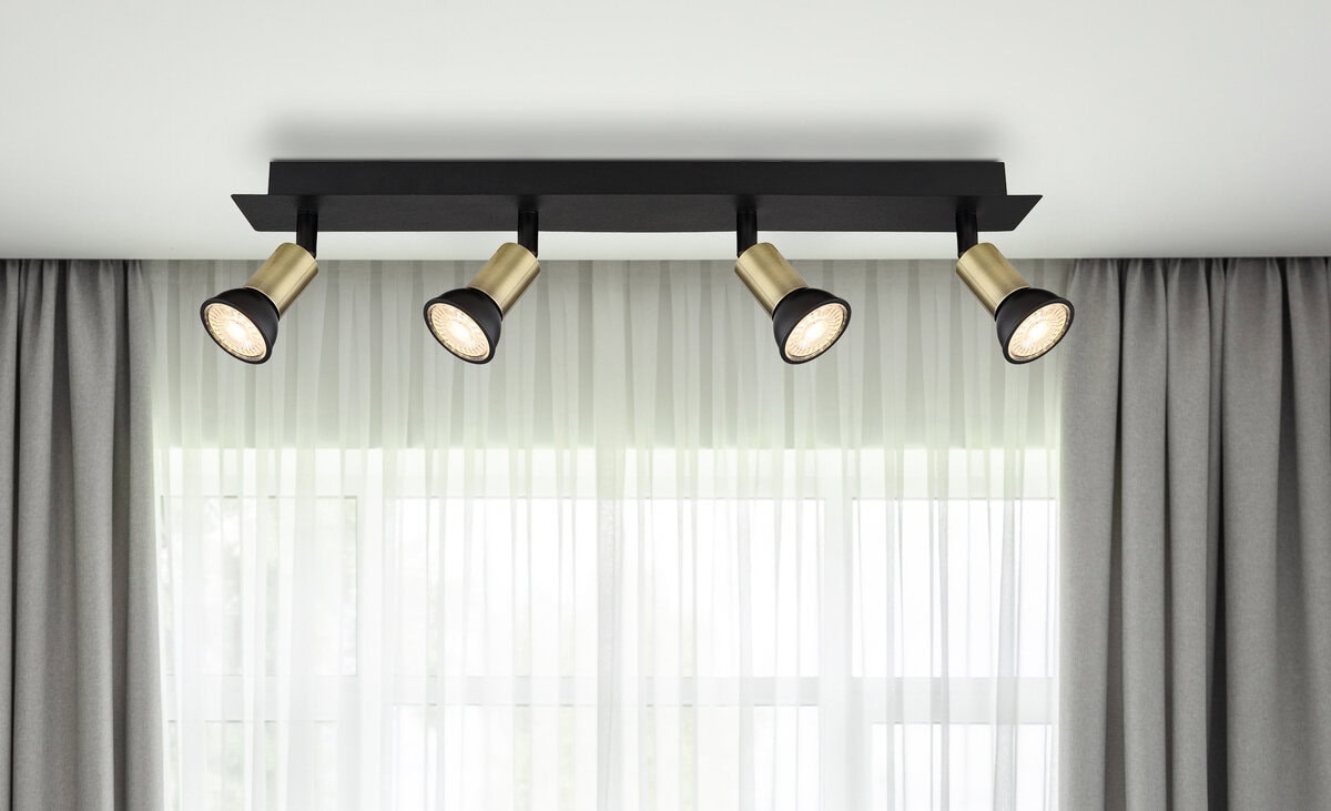 Ovaj jednostavan plafonski reflektor iz serije Drew impresionira svojim plemenitim dizajnom. Okretni reflektor od metala u crnoj i zlatnoj boji opremljen je sa četiri GU10 utičnice i ukupne je dužine 50 cm. Slobodnim odabirom izvora svjetlosti možete odrediti vlastitu boju i snagu svjetla do maksimalne snage od 35 vati. Zbog uštede energije i dugovečnosti preporučujemo LED lampe.