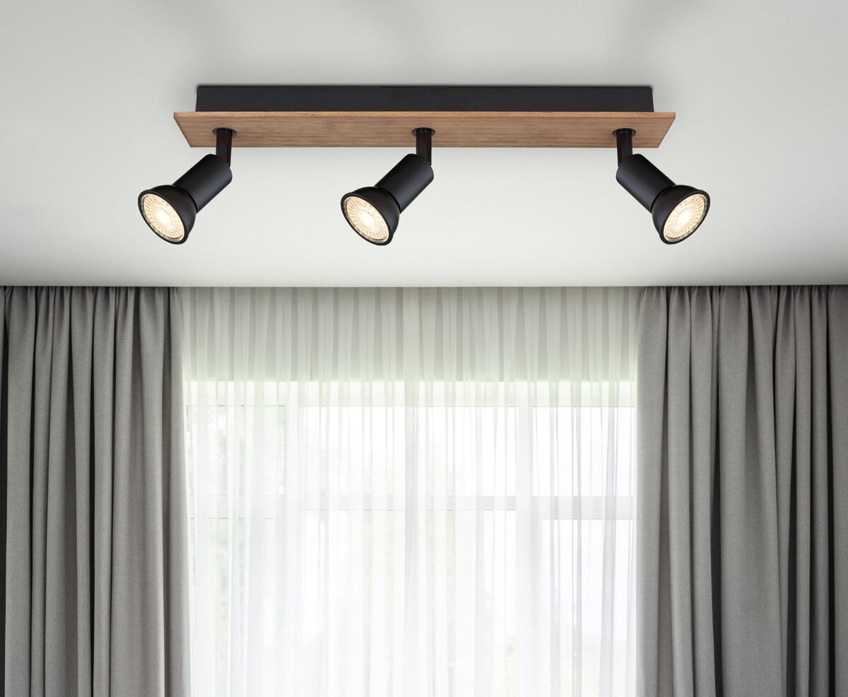 Ovaj jednostavan plafonski reflektor iz serije Drew impresionira svojim plemenitim dizajnom. Okretni reflektor od metala i drveta opremljen je sa tri GU10 utičnice i dužine je 40cm. Slobodnim odabirom izvora svjetlosti možete odrediti vlastitu boju i snagu svjetla do maksimalne snage od 35 vati. Zbog uštede energije i dugovečnosti preporučujemo LED lampe.