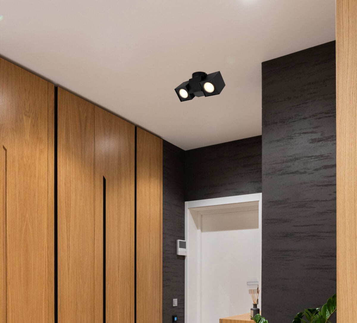 Ova moderna plafonska lampa serije RORY inspiriše stilskim dizajnom. U apstraktnom obliku, dva kućišta (26 x 8 cm) od crnog aluminijuma i metala formirana su na pravougaonom plafonskom nosaču. U svakom od dva pravougaonika nalazi se GU10 utičnica, koja vam omogućava da odredite boju svjetla i svjetlinu, do maksimalne snage od 5 vati. Zbog dugovečnosti i uštede energije preporučujemo LED sijalice.