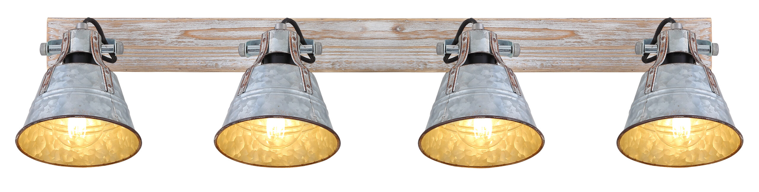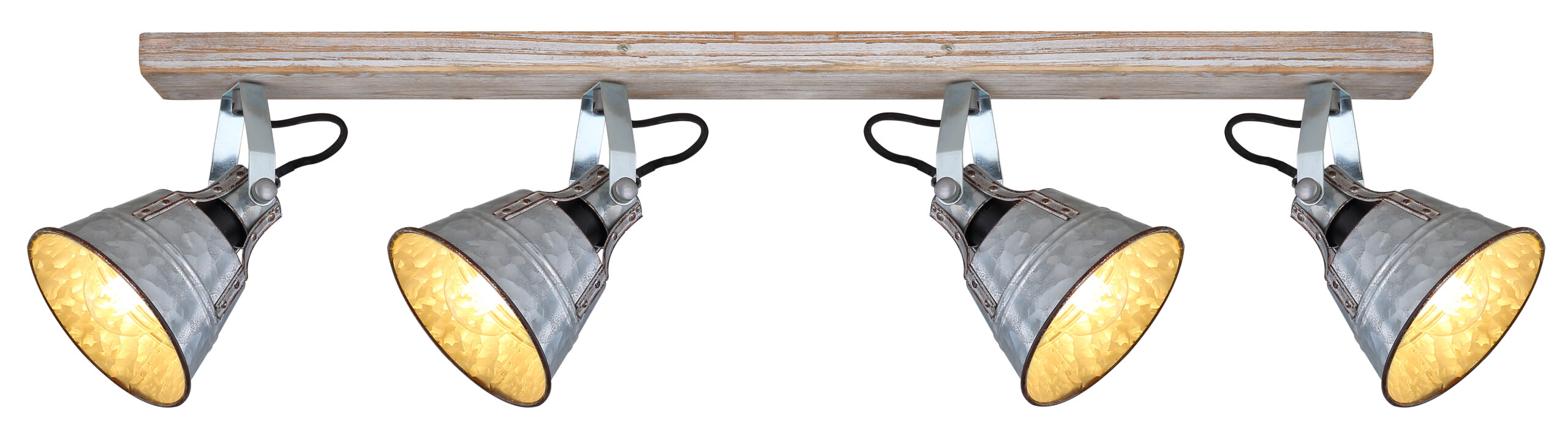 Plafonski reflektor iz serije Günther I odlikuje se svojim klasičnim dizajnom. 4 metalik okretne sjenila pričvršćene su na izduženu ruku (82 cm) od izgleda drveta. Izrađeni su od metala boje cinka. Zlatne unutrašnje sjenila pružaju pravo svjetlo bez obzira koju sijalicu odaberete (4 x E27 / max.: 60W). Sa ostalim modelima ove serije možete upotpuniti sliku u vašem kraju.