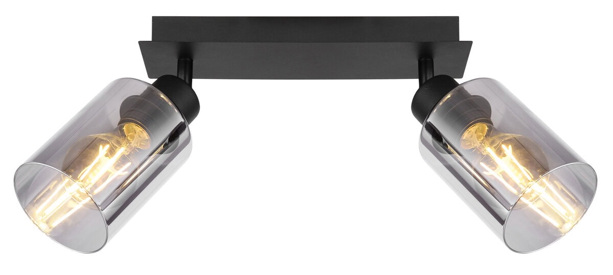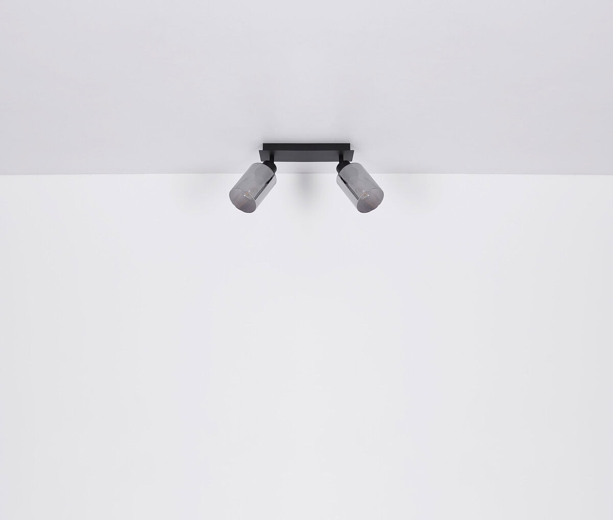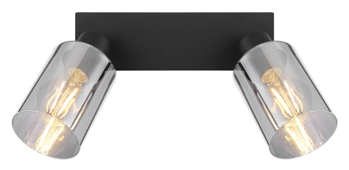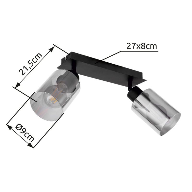 Ovaj prekrasni reflektor inspirira sjajnim dizajnom. Na uskom crnom mat metalnom kućištu (27x9cm) nalaze se dvije E27 utičnice, svaka opremljena prekrasnim cilindričnim sjenilom (Ø9cm) u dimnim bojama. Oni vam daju slobodan izbor da odredite boju svjetla i svjetlinu do maksimalne snage od 40 vati.