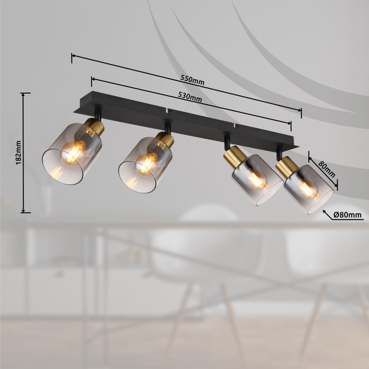 Uronite u svijet luksuza uz HOLLSY! Napravljeni od mat crnog metala i mat zlatnog metala, naši reflektori su savršena kombinacija stila i funkcionalnosti. Dimljeno staklo sa svojim čistim gradijentom daje vašoj sobi ekskluzivnu atmosferu. Sa izdašnim dimenzijama od 550x80x180mm (dužina x širina x visina), HOLLSY reflektor impresivno privlači poglede u svakoj prostoriji. E14 utičnice vam omogućavaju da sami odredite boju svjetla i svjetlinu do maksimalne snage od 25 vati. Doživite luksuz i sofisticiranost HOLLSY-ja i neka vaš dom zablista u novom svjetlu. Otkrijte mogućnosti HOLLSY sada i stvorite neuporediv ambijent!