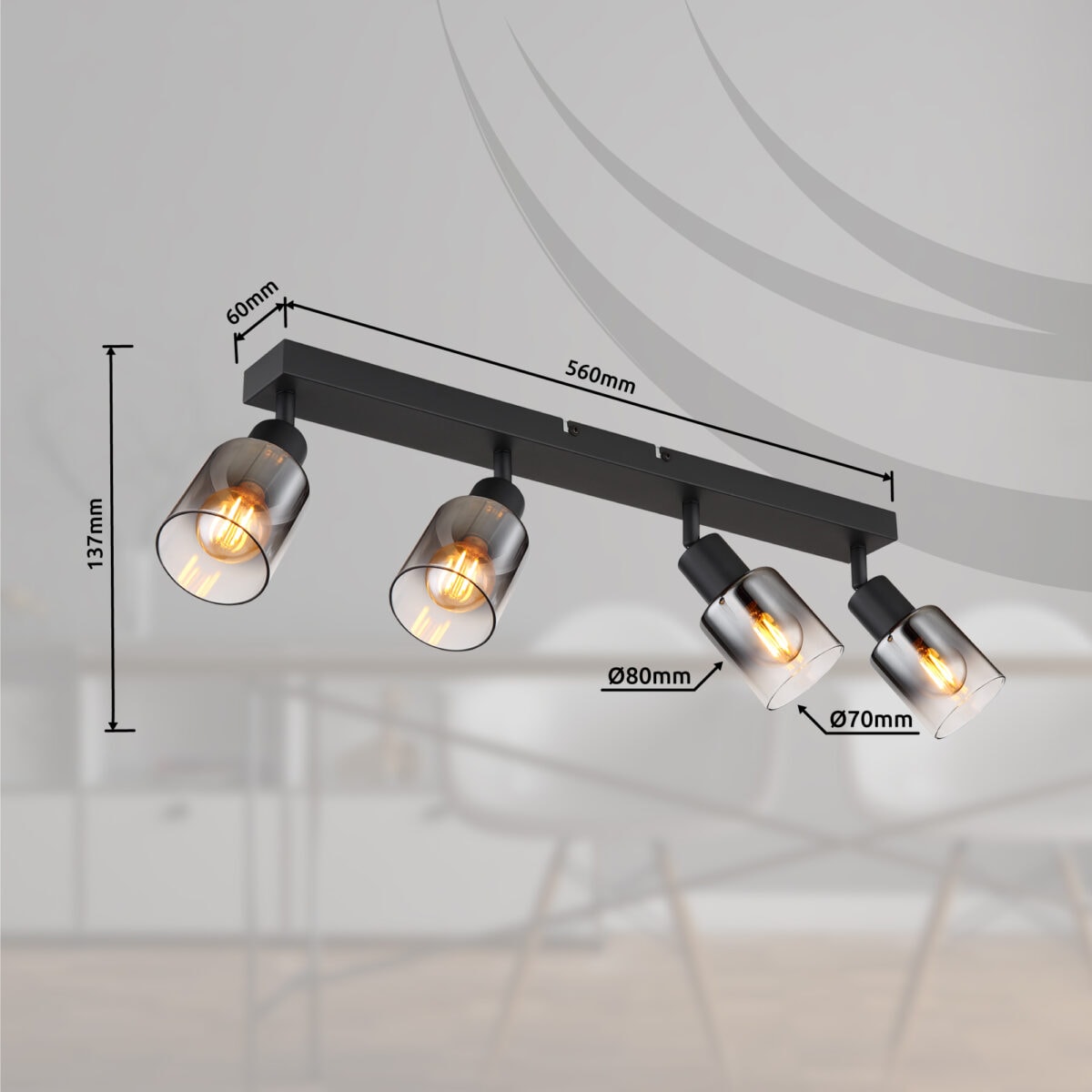 Uronite svoje sobe u impresivnu igru ​​svjetla s Hubertusom, našim reflektorom od crnog mat metala. Prozirno staklo boje dima daje svakoj prostoriji fascinantnu atmosferu. Sa svojim izdašnim dimenzijama od 560x70x137mm, Hubertus je prava privlačnost za oči. E14 utičnice vam omogućavaju da sami odredite boju svjetla i svjetlinu do maksimalne snage od 40 vati. Uz Hubertus stvarate jedinstveno svjetlosno iskustvo u svom domu ili uredu. Kombinacija visokokvalitetnog metala i izvrsnog dizajna stakla dodaje elegantan i stilski štih svakoj prostoriji. Unesite fascinantan izvor svjetlosti u svoj život s Hubertusom i dopustite da budete očarani njegovom magijom.
