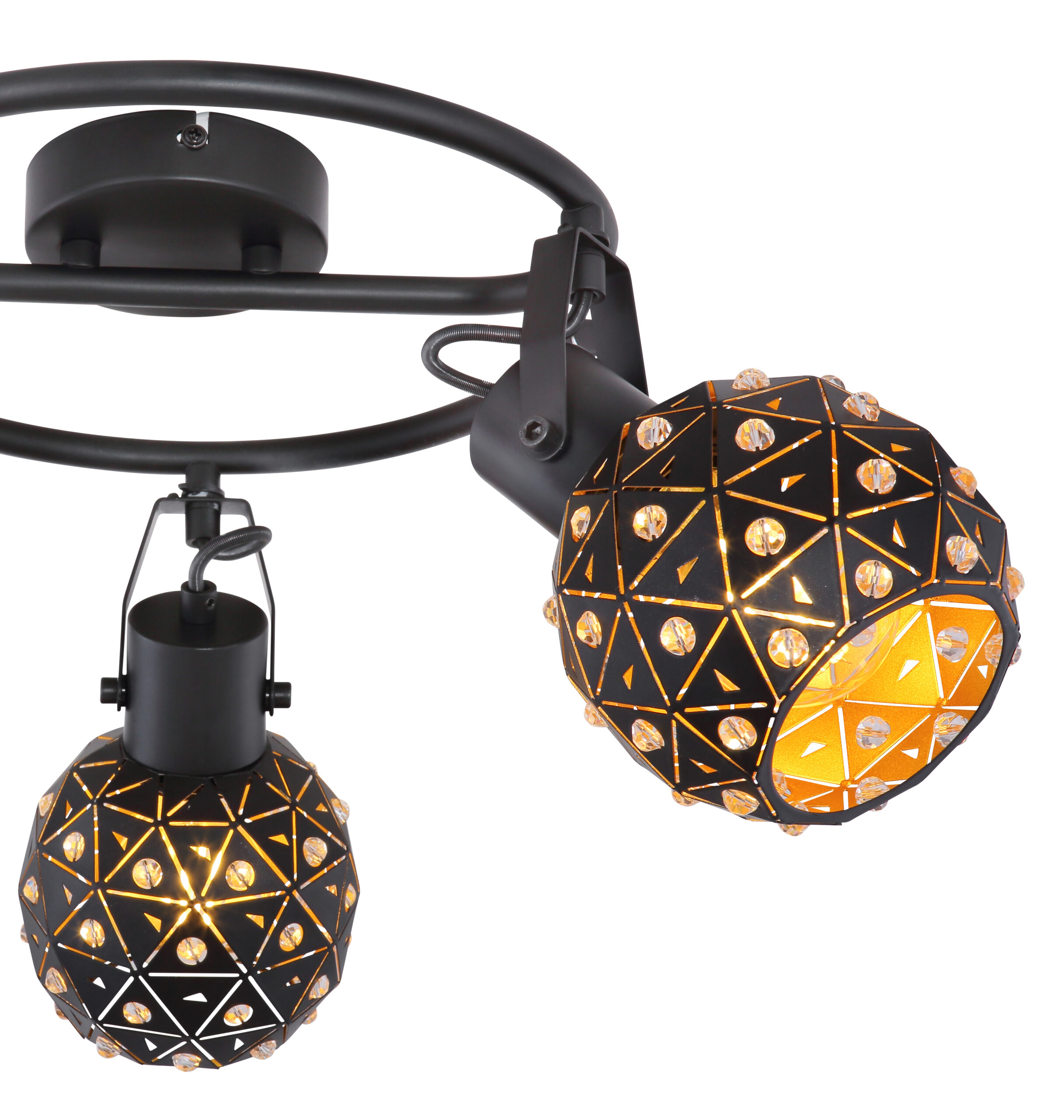 Tri plamena reflektora iz serije Jodie sebe opisuju kao neobične i moderne. Crna mat nijansa opremljena je mnoštvom prekrasnih K9 kristala, koji vašem domu daju poseban štih. S obzirom na to da je izvor svjetlosti (E27 max. 40 W) slobodno biran, sami možete odlučiti u kojoj boji svjetla ili intenzitetu svjetla sijaju vaša četiri zida. Nadalje, sjenila su podesiva kako bi se stvorio optimalan rezultat osvjetljenja.