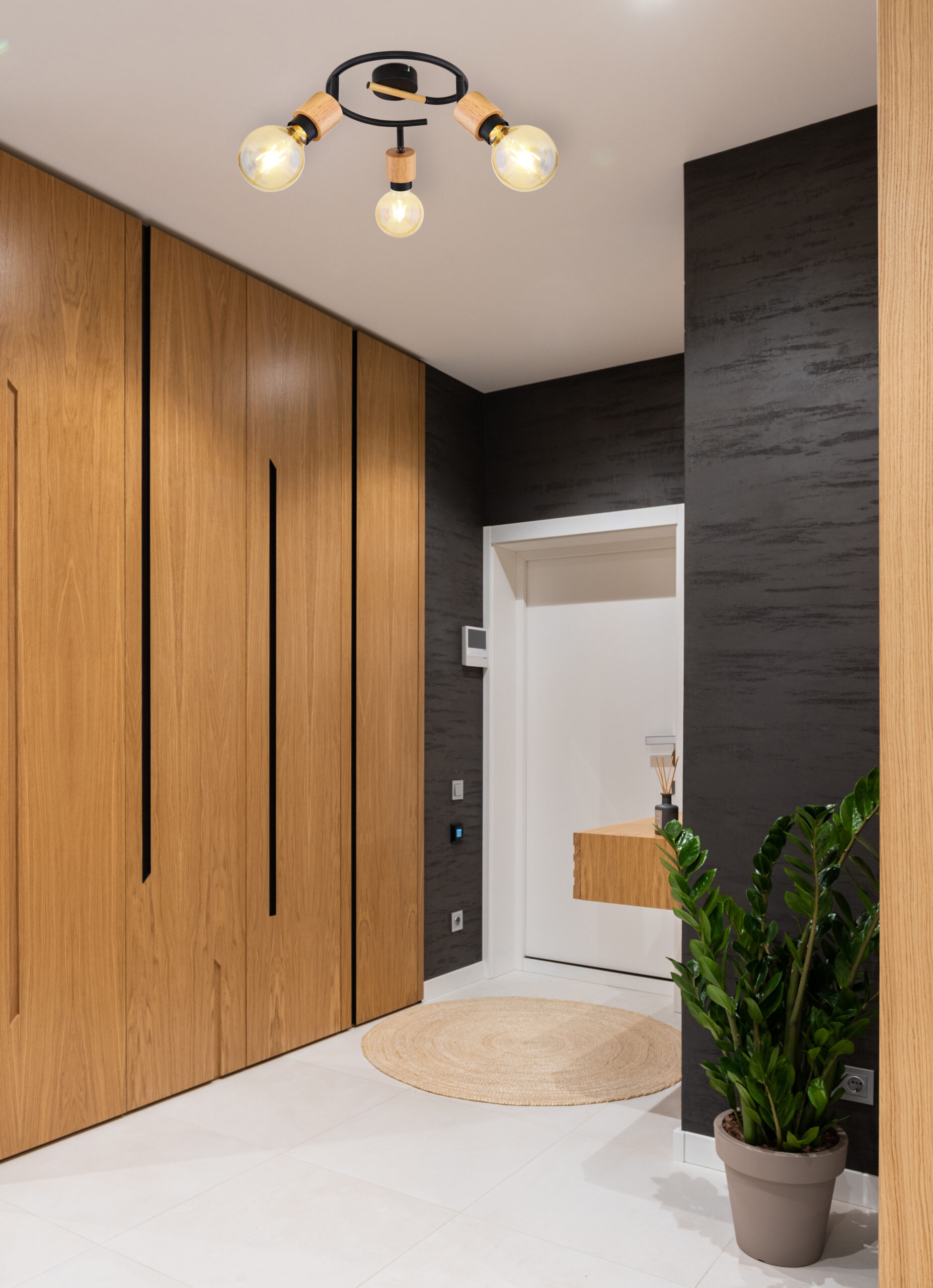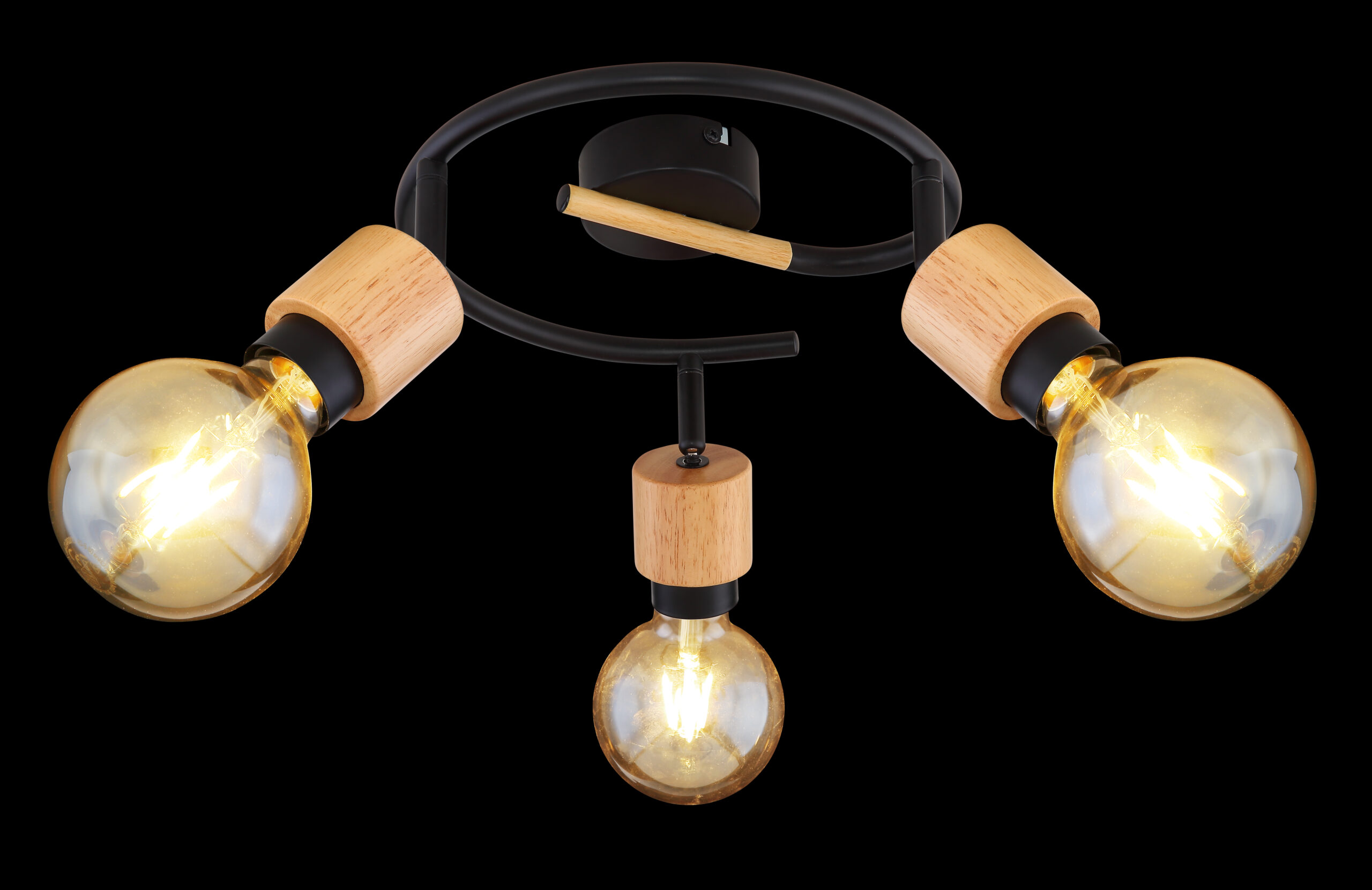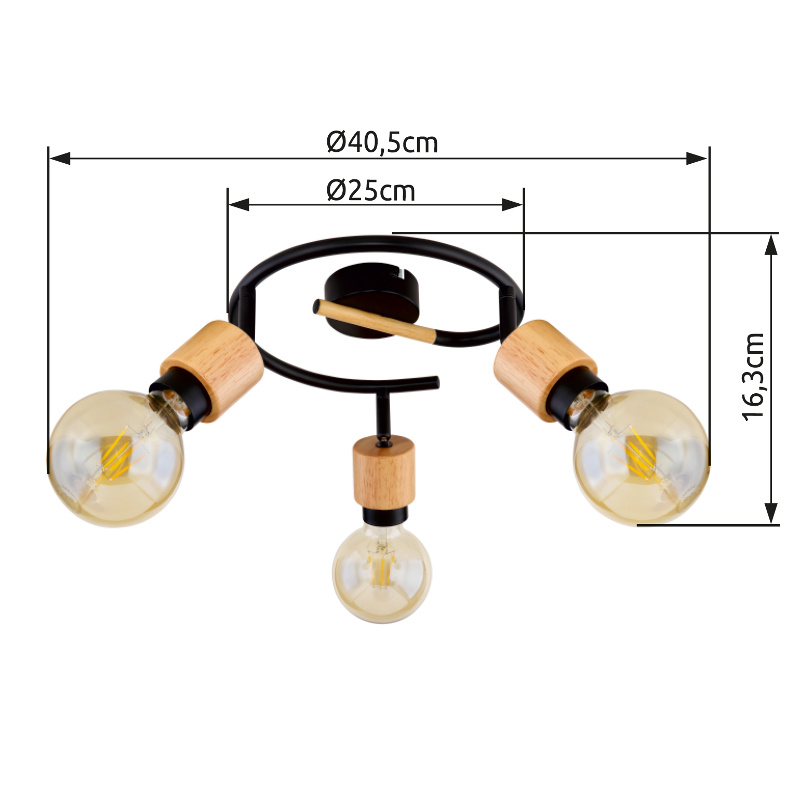 Ovaj plafonski reflektor iz serije Jorna impresionira svojim prekrasnim dizajnom od drveta i crno-mat metala. Na spiralnoj šipki (ø 25 cm) su raspoređena tri okretna mjesta u izgledu drveta, od kojih svako može biti opremljeno E27 sijalicom po izboru. Kao rezultat, možete odrediti boju svjetla i svjetlinu prema vašim idejama. Uz nekoliko artikala iz serije Jorna možete upotpuniti cjelokupnu sliku vašeg interijera i pružiti moderan ambijent.
