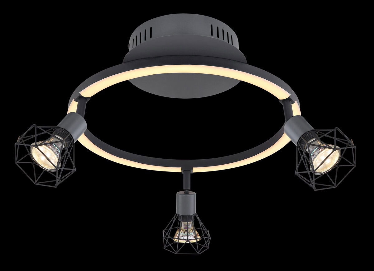 Ovaj moderni stropni reflektor iz serije Jutta može dodati elegantan izvor svjetlosti u vaš interijer. Sastoji se od crnog metalnog prstena sa opal plastikom i tri okvira u boji grafita sa prekrasnim metalnim rešetkastim nijansama. Utičnice mogu biti opremljene LED sijalicama koje se biraju pojedinačno, pri čemu LED sijalice prekrivene plastikom daju 460 lumena jakog svetla sa prijatnom bojom svetla od 3000 Kelvina (toplo bela). Uz više članaka iz iste serije, možete upotpuniti cjelokupnu sliku u svoja četiri zida i pružiti moderan ambijent.
