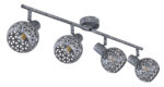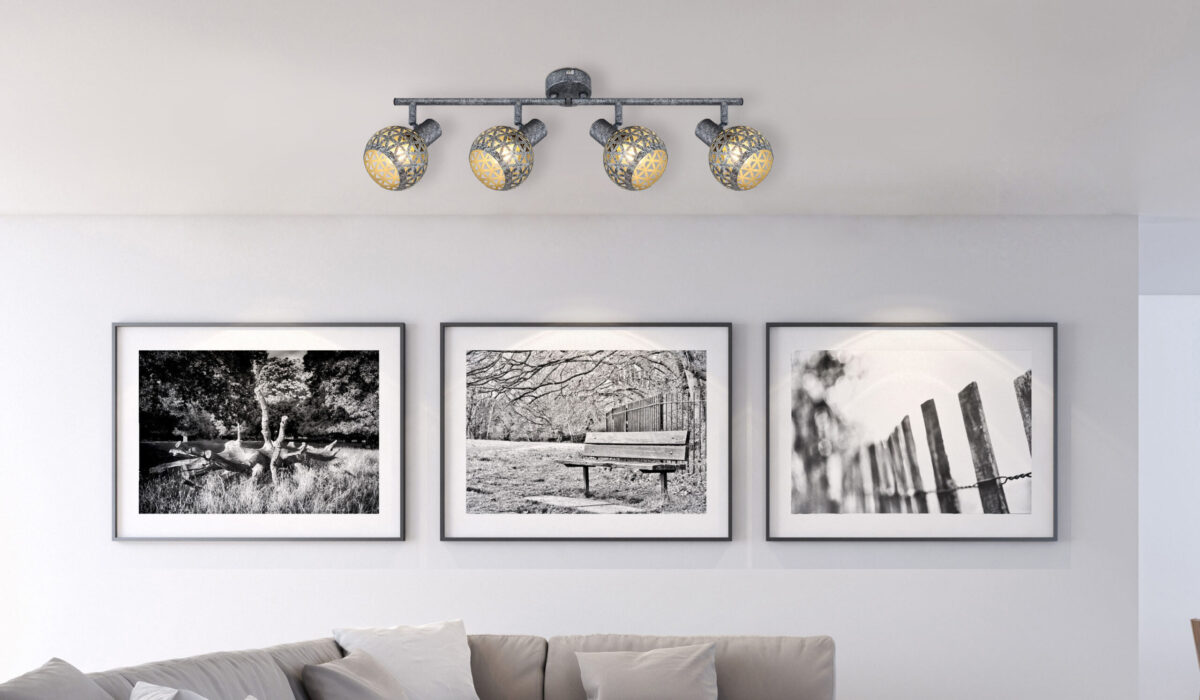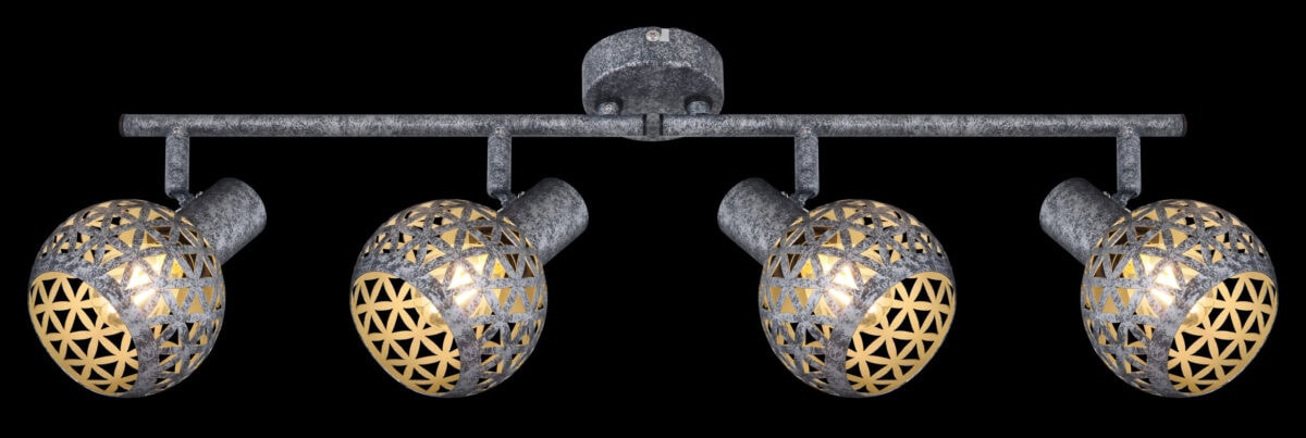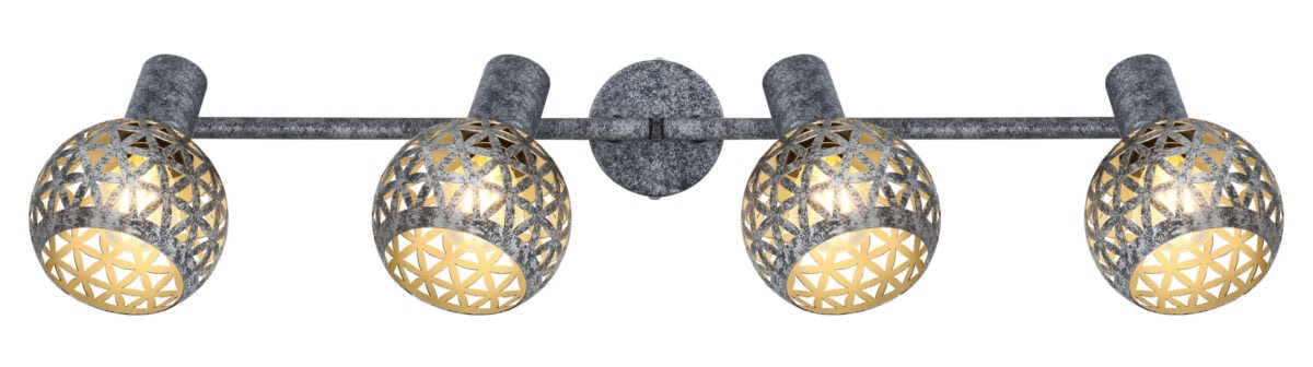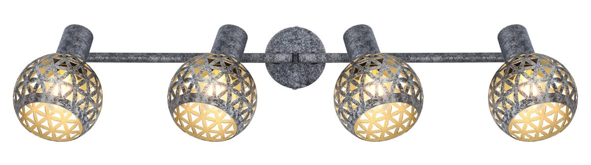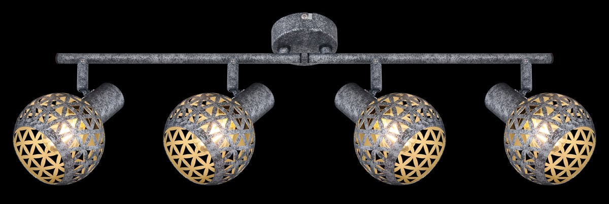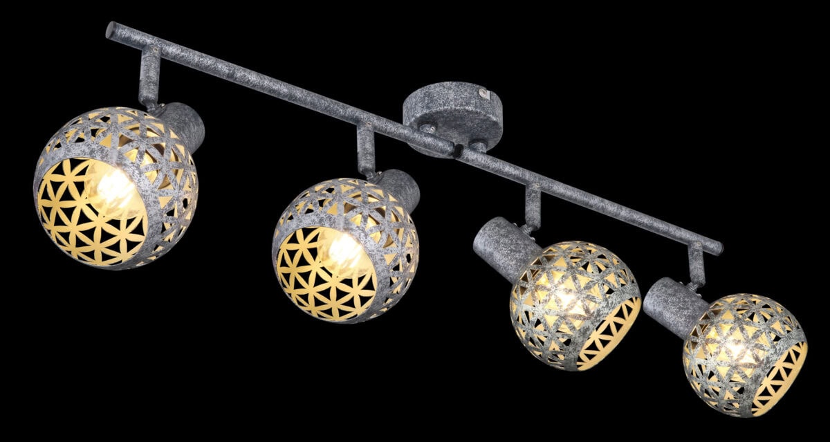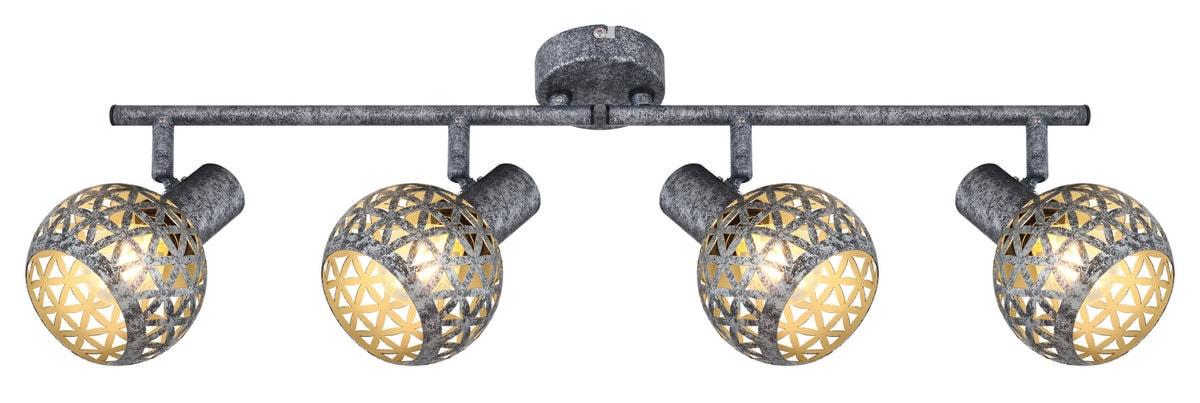 Ovaj plafonski reflektor iz serije Lela (75,2×10 cm) uvjerava svojim prekrasnim dizajnom od antikno sivog metala. Sastoji se od dvije metalne šipke, svaka sa dvije E27 utičnice, koje imaju lijepo zakrivljene metalne sjenila sa trokutastim udarcima. One mogu biti opremljene odgovarajućim lampama po vašem izboru, što vam daje mogućnost da individualno odredite boju svjetla i svjetlinu. Sa ostalim modelima iz iste serije možete upotpuniti cjelokupnu sliku u svom interijeru i pružiti moderan ambijent.
